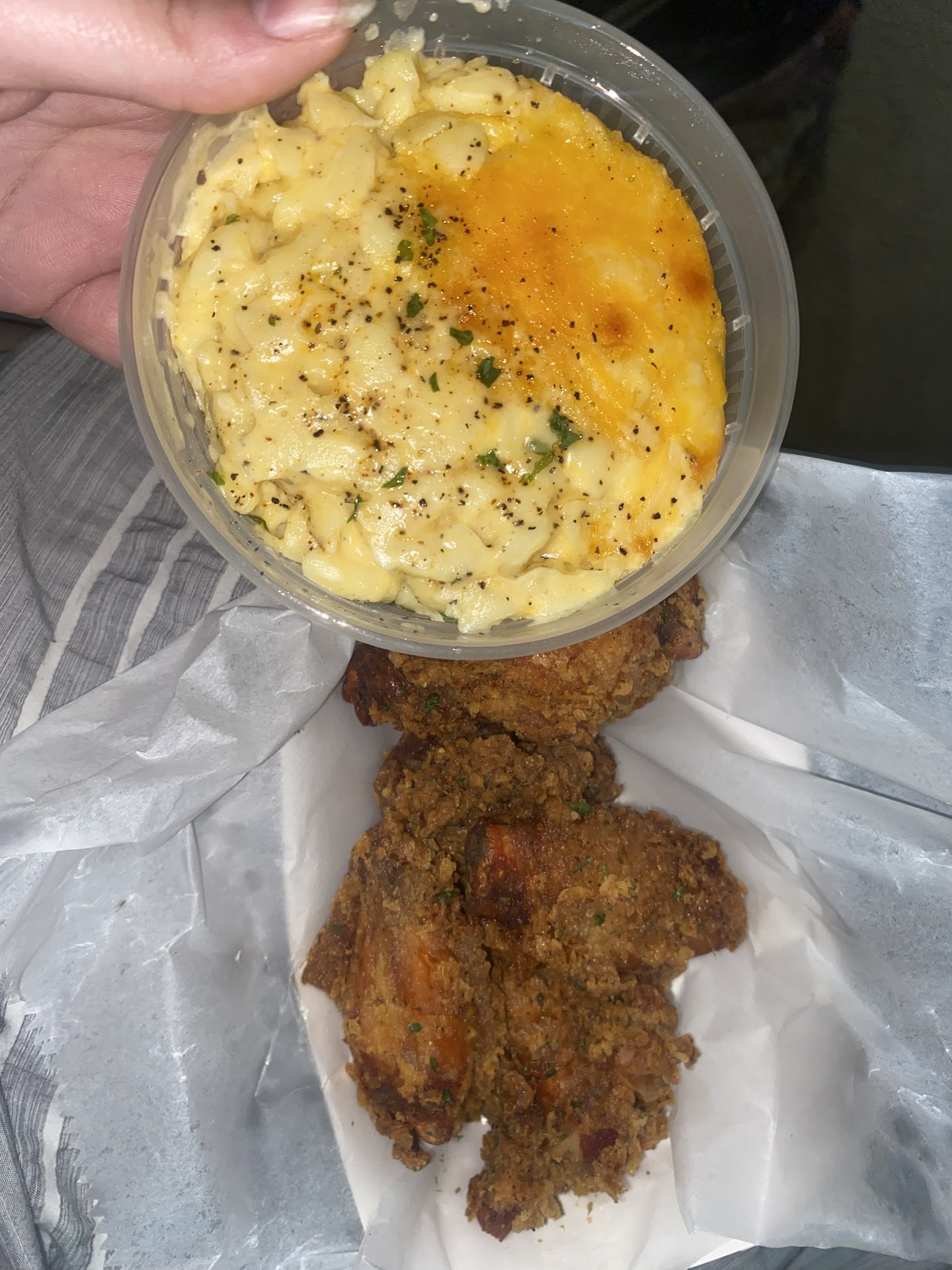 I Was looking for a place with good fried chicken - while I appreciate the food and what it’s bringing to west Seattle specifically, I’m not getting a wow experience BUT it is good. I got plain chicken wings and Mac n cheese. The chicken was easy to pull off with not too little and not too much meat on the bones though the after taste tasted like it was fried with the same oil from catfish and/or seafood. Mac and cheese not too bad but too much cheese for me I can hardly taste the noodles n seasonings used maybe that’s the point idk😩 otherwise when I’m craving, I would probably get it again as it...