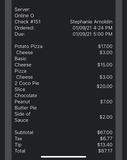 Read moreWe ordered from here last night. I was excited to try it. Our order was a potato pizza, cheese pizza, 2 coconut pies and a peanut butter pie. Cost was a bit higher than I would like but it is a Tom Douglas establishment so I figured it was worth the splurge!