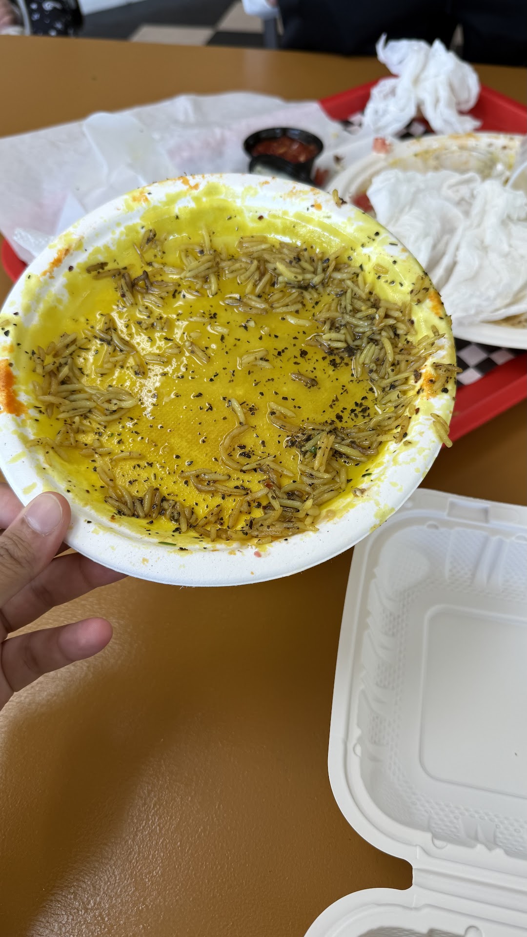 I visited this Mediterranean restaurant for lunch and ordered the chicken shawarma plate. Overall, it was okay, but a few things stood out. The hummus was really good. However, the rice was extremely oily. It had a very strong olive oil taste, and the amount of oil made it hard for me to eat much. In fact, when I lifted my plate, the oil had soaked through it and left a noticeable pool on the tray — a bit off-putting.