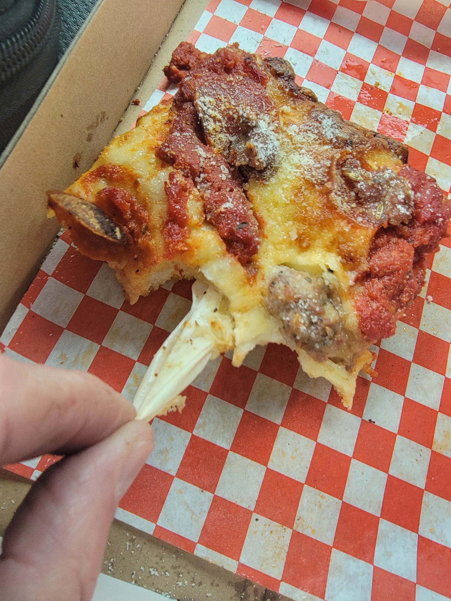 I was not sure what to try, but the Meat Lover's came fresh out the oven as soon as I was ordering so I opted for that and a Sicilian Slice.
