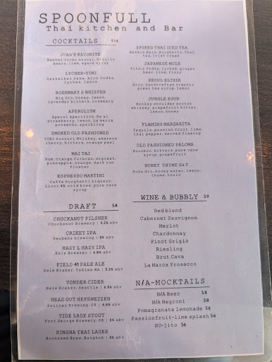 Read moreSpoonFull is a Thai food restaurant on Ballard Ave in the downtown/old Ballard area. Parking around here can be fine on most weekdays or awful on weekends. They have a large indoor area with 2 rooms that has probably 2 dozen tables and a few tables outside under an awning. Their menu is a good size, with prices being higher but because their portion sizes are bigger. The taste of their food is fantastic, with spice levels being on the higher end of the scale (think 2 stars as being about their halfway mark). The staff here are amazing, very friendly and helpful and always around getting you what you need. Overall it's a solid spot to eat with big portions and...