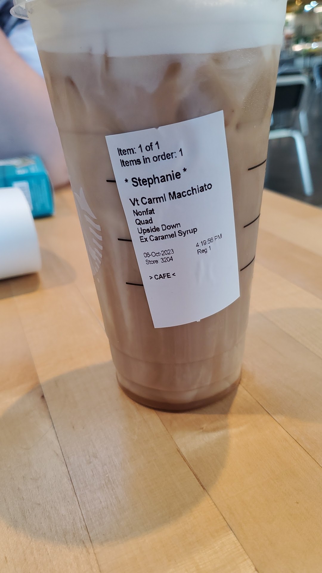 My cashier lovely girl (her name started with a "N" I believe. I was going to ask how to pronounce but we were side tracked laughing. When it came time for my drink and 1 heated item (premade). I waited longer than 9 other people who came after me. After a few people (that came after me) got their orders (Food & drinks!) I got my hot meal, but no drink. This was a very simple drink with no extra/substitution. I waited a few minutes longer and watched 4 other people get their hot/cold-blended drinks. I walk up and spoke to Christin she says "yea you're waiting on "drink" im wrapping that up right now" (as she hands off 1 drink and starts another. She then sets my drink down and I hear her say "frap" but she didn't say my name so I look around and a few people went up to check. After a few minutes she then looks at the name then looks at me and yells "-my name-". Did I offend someone by smiling? Is this normal? Am I overreacting? A lot of people (including all the other staff members) were smiling at me. Maybe this wasn't the time for "good vibes" and happiness 🤷🏿♀️. She called out every one else's name very nicely and sweet. It was slightly busy but they all received their items rather quickly. I ended up being one of the last customers of the day. I was ahead of the foot traffic, watched it all and ended the tail end of it, all with a simple order. When I went to throw away my garbage I looked up at her, and she rolled her eyes....