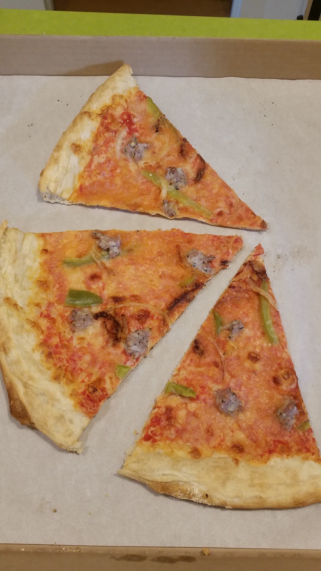 NEXT DAY: Who doesn't love leftover pizza? Answer, everybody, if it's this pizza. Adding photos of second experience, day after. The pizza was sausage, onion, peppers and EXTRA cheese. Look at this, this is 3/8 of a $44 pie. I count ten strand pieces of onion, nine green pepper slices, BARELY any cheese, and ten tiny pieces of sausage. And I'm disappointed to say that I paid $12 extra for the extra (supposedly) cheese, onion, pepper and sausage. I can't figure out how this place went from a really good pie just a couple weeks ago to this garbage. Staff issues? I don't know, but this was truly bad pizza. OK, dropping this to 2 stars, but I am done wuth Supreme. Sorry, but I would be irresponsible to ever recommend this to anyone. I've made pizzas at home for decades and I really hate to be negative, but man. This is really disappointing. Sorry Supreme, but it's true to say, I am SUPREMELY...