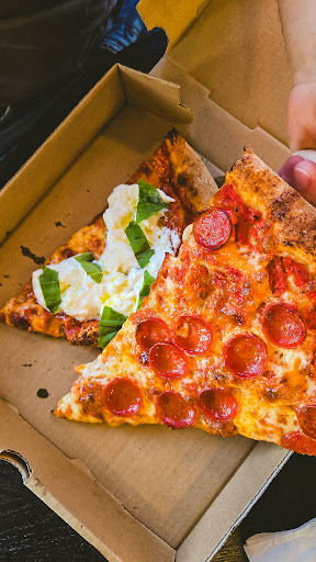 The burrata arrives cool and creamy against the hot pizza, creating contrast in temperature and texture. The crust is kissed with olive oil and maybe a touch of garlic, the tomatoes are fresh, and the basil feels like it was just picked. Every component feels intentional, not piled on, and the balance is spot on.