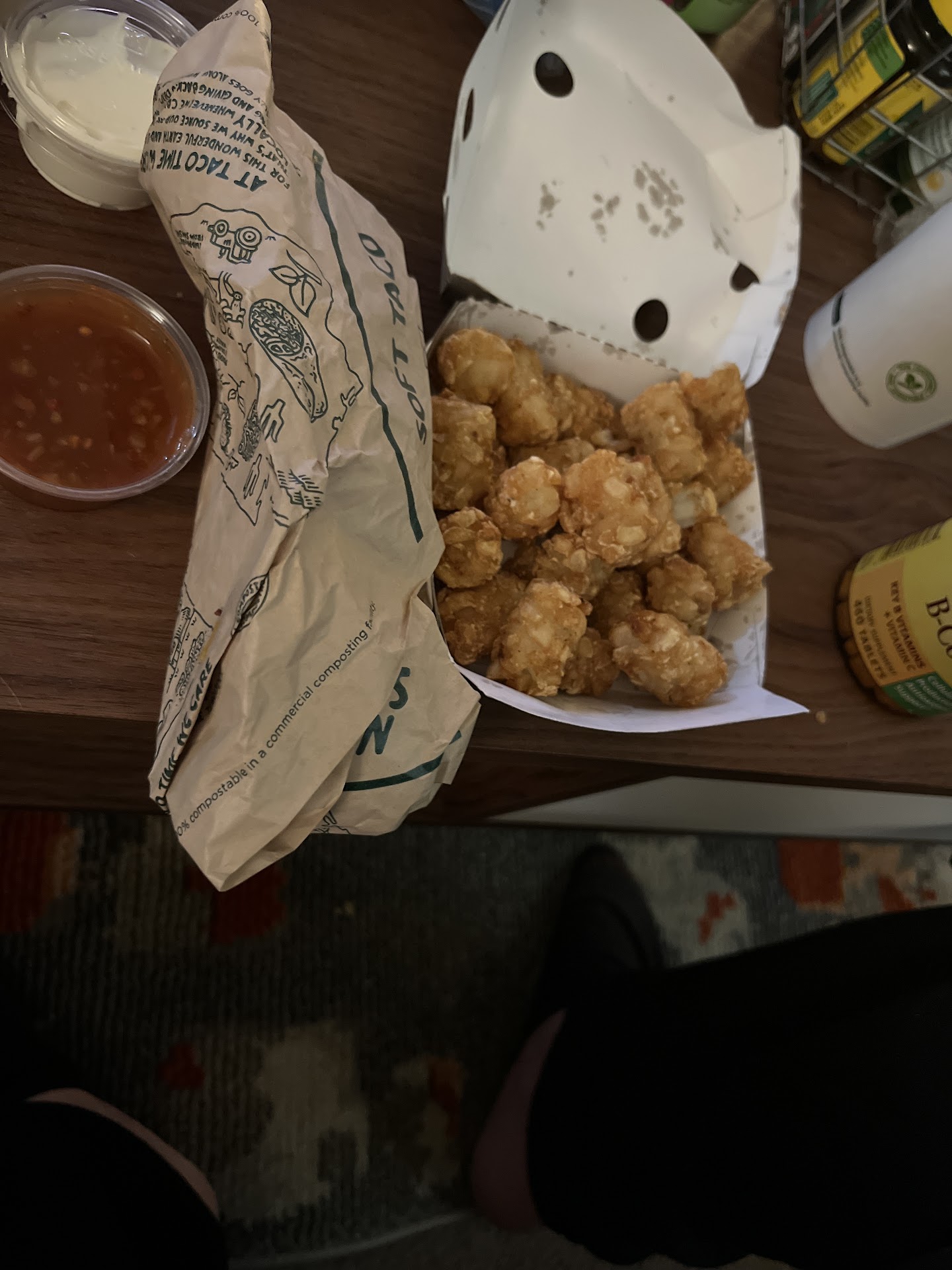 I also don't understand why, but the food quality seems lower here than any other TT location. When I've ordered mexi-fries they almost always come with a big actual puddle of oil in the bottom of the container which has twice spilled all over my car seat by being tipped sideways (seriously, it's like they just ladle the tots straight from the fryer without even trying to drain them or something??). The taco tortillas seem chewy but not in a good way - like they're left sitting out in the air and they sortof start drying out or something? and the salads and tacos I've ordered just seem really slopily put together - toppings falling out of a loosely rolled taco, or dangling half way out of the taco salad bowl, but with the lid smashed on them anyway....