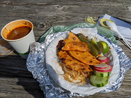 Ā Ā Ā Read moreThe carne asada is delicious! I really enjoyed my taco plate which came with three tacos, all the veggie fixings, rice and beans, and a spicy salsa verde. For just $9, I found this to be very filling and delicious. I don't care for soda, which the taco plate comes with, so I paid extra for horchata. With tip my total came to about $15. There is a small dining area covered with a canopy and wind barrier that was pleasant to sit in on a warm day. These are the only tacos I've had in Seattle that I would come back for. Looking forward to trying other menu items next time! Pretty much right at opening time (11AM) on a Wednesday there were already at least 8 people placing orders, which speaks to the popularity...