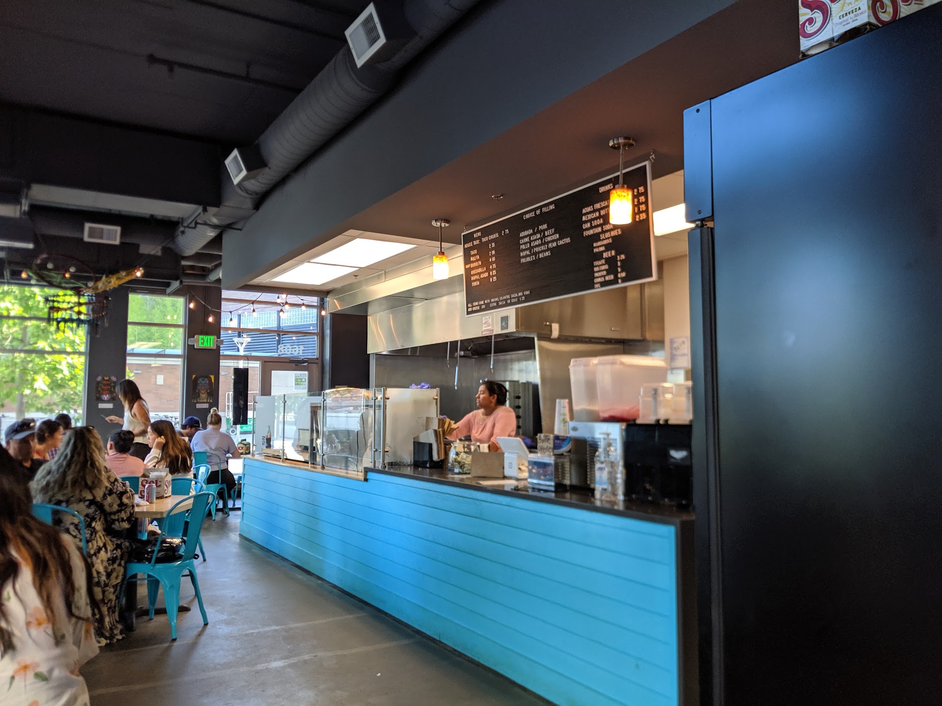 For the second time in under a month I've been to this place and enjoyed the food and feel of the service there. I was in the Community Center Square to attend documentary issue-based films at 7 p.m. and this restaurant is immediately across the square from the community center locale. I still have not been able to find out what a Chukis is. The first time I was here I tried the Mexican lager Style Chukis beer and it was delicious. A refreshing change from the more IPA style and Hoppy Mexican beers which seem to be far more popular. I also had and enjoyed the baby burrito a more human sized meal burrito than the giant burritos more popular in other restaurants. And only $4. This evening I had the mulita, which is sort of an open-faced soft taco shell with a taco like filling and another soft taco face on top. Instead of the usual variety of meats or beans I chose the cactus as my extra ingredient. A new ingredient for me and it took a couple of bites before I decided I liked it! Again this was a human-sized quick meal portion with a wallet-sized price of $2.75 if I recall correctly. None of this was fast food they cook it right there and clearly prep it right there and it doesn't come out ASAP, but it does come out in a very reasonable amount of time. An excellent spot in my opinion for a quick meal of quality ingredients prepared on the spot and served with a smile. The cleanliness rating is excellent and I think it is a good spot for a pair of people or a small 4-person group to hook up and have a genuine Mexican meal. I wish they didn't use plastic ware and next time I might bring my spork. Bus...