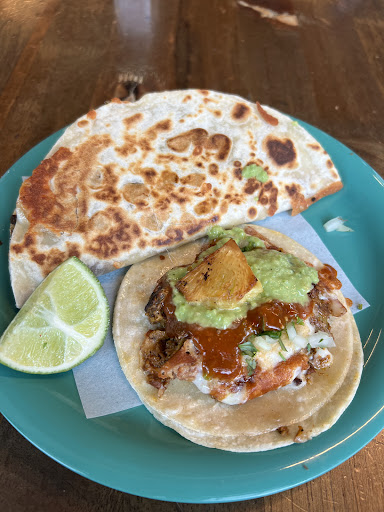 After looking at the menu online for a quick bite nearby to go with some local dark beer I purchased earlier without breaking the bank I decided to stop by and pick up a couple of tacos and a meat filled quesadilla. The place was clean, quiet and had a pleasant atmosphere to it. Being from out of town (Los Angeles) and trusting Mexican food is not very much different from place to place, I placed my order with the heavy set fellow behind the register counter whom answered a few questions I had regarding the items as he struggle to accommodate his long hair under what seemed not the right size hair net. Paid him credit and requested the order to go. He mentioned it would be less than 5 minutes to be ready and bragged about being the best Mexican food place in town. When ready, my order was handed out in a paper bag which after checking it to make sure it was accurate I took and headed to the nearby hotel room I was staying. The smell of the food and the warmth of the bag on my hand as I carried it plus the thought of enjoying it with some chilled beer built greater anxiety as I approached the doorway of my room. As I freed the aluminum lined plate and with beer nearby it, I proceeded to enjoy this very aromatic meal. Well, to my surprise and after taking the first bite out of a taco I discovered the chicken meat on it was super dry. Yeap, very hard and dry as if cooked not fresh as when I ordered but more like hours before. Was not really very flavorful as I imagine since my mouth kept salivating massively in order to help break down the hard chicken pieces. There were guacamole, cilantro and some spicy salsa on it that masked the hardness of the chicken. I really was not impressed with the chicken tacos at all. They were somewhat close to chicken jerky tacos. I consumed most of the beer trying to wash down the tacos. Past the hard tacos and on to the quesadilla with half the beer I started and only after two tacos. Which by the way, were small sized as are street tacos back home. Also, half hearted about the medium size quesadilla but hoping for the best since marinated pork was the meat of choice I requested. This in fact, was a much better choice by far than the chicken. It was tender, juicy and definitely more flavorful than the tacos. Same topping for it as on the tacos with the exception of the spicy salsa that seemed more abundant and poured out everywhere as I took bite after bite and tried to ease the spiciness with some beer. All finished with the quesadilla and almost with the beer and now resting sitting up on the bed with the back against the bed's head rest pondered on the comment the big fellow at the taco place made about them being the best Mexican food place in town and how short the food fell from that comment. The following day, the effect of the extra salsa on the quesadilla help me clear out the system really good. Here the take away for me from this place. When ordering tacos avoid the chicken if not ask to try first to assure is freshly cooked to ensure flavor and tenderness. In regards to the quesadilla, advise them to go light on the salsa unless you enjoy it much before and the day after. Overall and in the future I will not be returning to this place nor recommending it either as far as quick, tasty and inexpensive which by the way, was not so much so by my account but perhaps so...