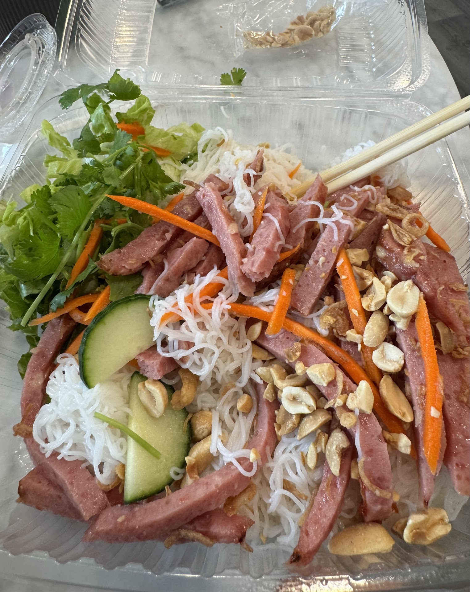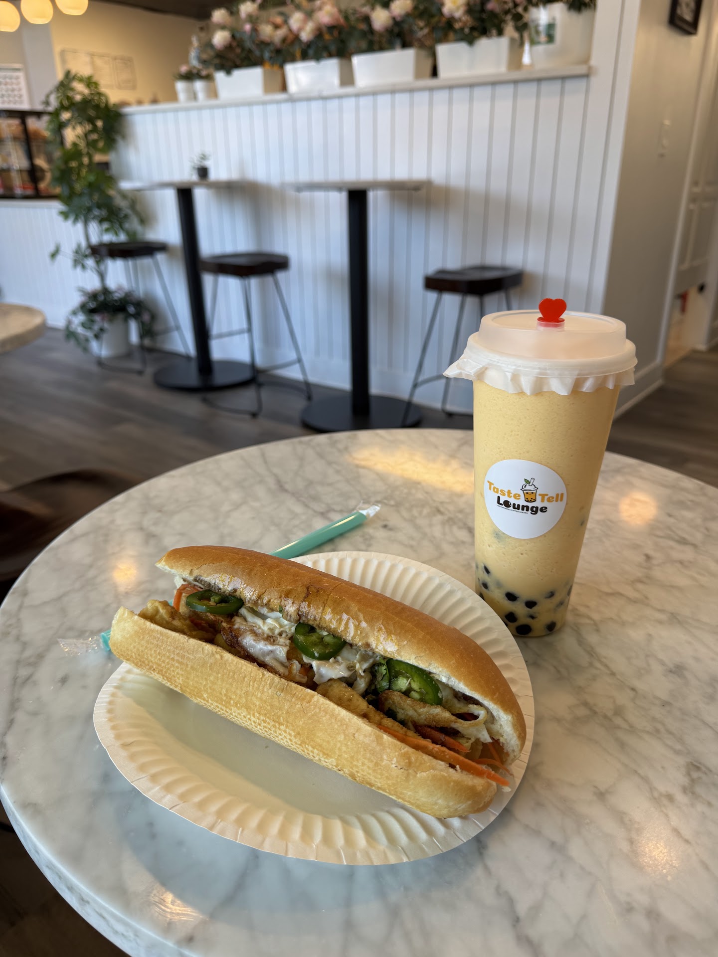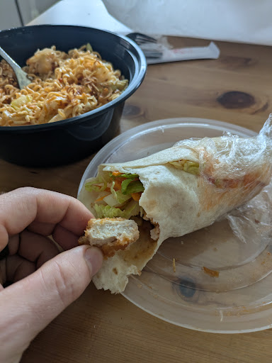 Read moreI would never order food here again. We got the Tofu Bahn Mi, a street noodle and a chicken wrap. I'd say it was right there with standard middle school cafeteria food. The chicken wrap was frozen chicken patties that had been quartered and an old cut salad mix with sweet and spicy ketchup. The "street noodles" were a ramen kit with sweet and spicy ketchup on it. The bahn mi was just tofu and old vegetables. It was the blandest $26 I've ever spent. It's unclear if there is a kitchen in the back or just a Subway style assembly board with a microwave. The bubble tea is pretty average, it's a fine...