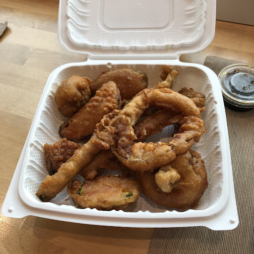 The salmon was plain, pan-cooked fish with sauce clearly added after cooking. The tempura had EXTREMELY thick batter, was soaked in grease, and was served with soy sauce (???). FYI, tempura should be served with tentsuyu.
