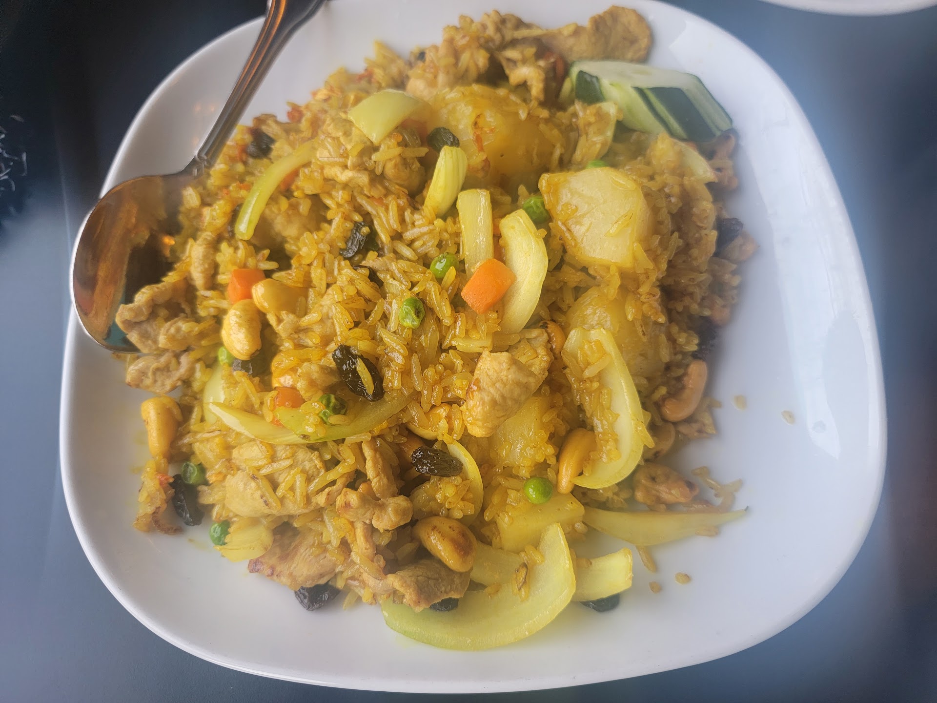 The curry had a lot of sugar. Was way too sweet and it wasn't really a curry more than a soup; it was very watery.