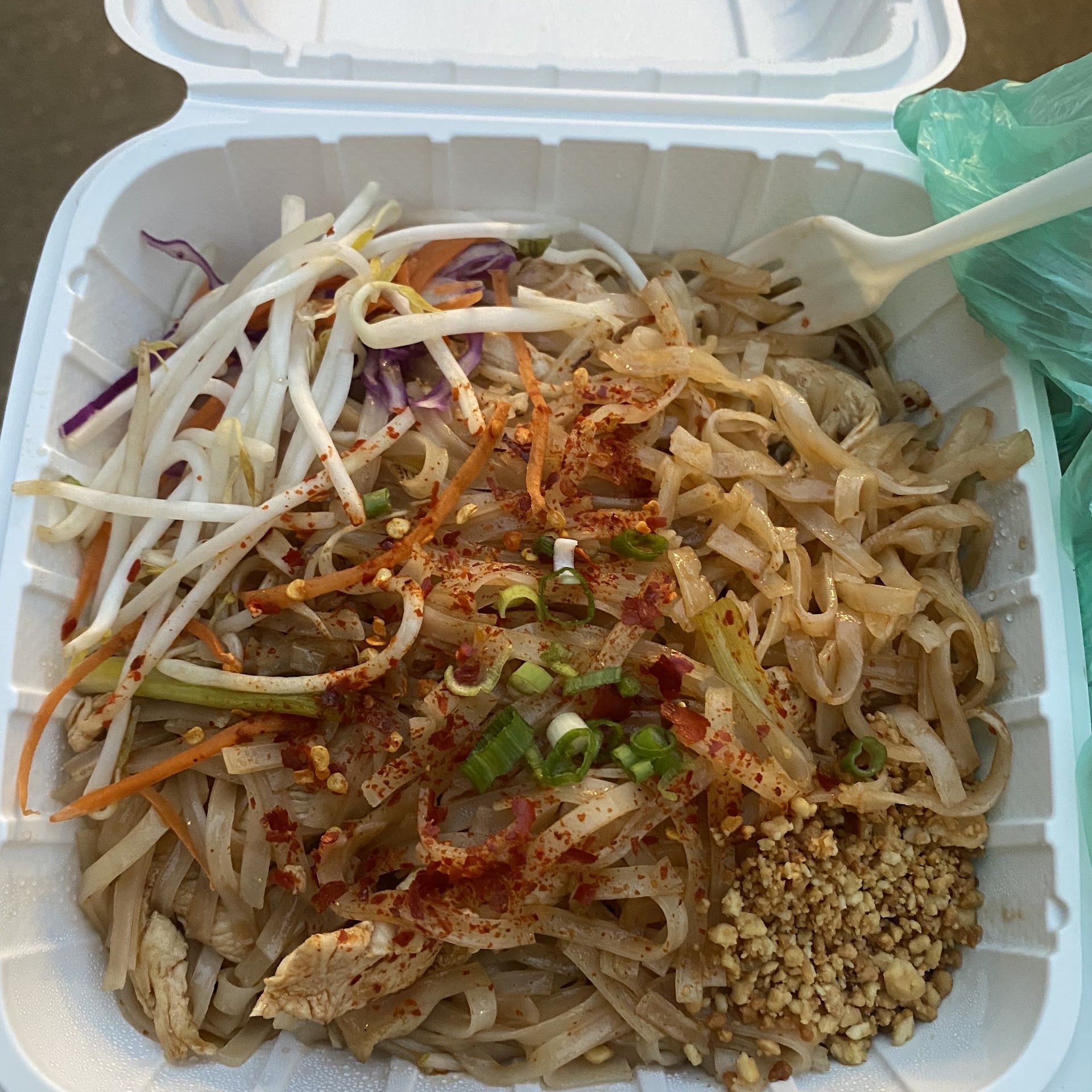 Read moreNot the worst but absolutely not good. The wait staff is friendly, professional, and I like how fast the fast service is. When I went the first time, I got the Kee Mao noodles and a Dr Pepper. First of all, my drink was definitely not Dr Pepper, as it tasted more like a horrible cheap knockoff that I couldn't have more than two sips of. Second, there was so much grease in the noodles that I needed to order a side of rice to have something to eat w the veggies/protein I had to pick out of the inedible noodles soaked in grease. Even though I had a bad experience the first time, I decided to give it another try because of all the reviews that are raving about the peanut sauce. I figured maybe I just didn't order the right thing. My order for my second (and last) time: fresh spring rolls and fried rice. The spring rolls were rolled very tight so nothing fell out, which I appreciate. However, I don't understand why there is two proteins and scarce veggies. It's a fresh spring roll that just didn't taste that fresh, thanks to the dry chicken within it. The peanut sauce? More like bland peanut paste. Finally, the fried rice was decent. Although, I don't understand why two whole tomatoes were thrown into it. Also, found a beard hair on top of the pile of rice, almost like a garnish, when I opened the carton. Thoroughly disappointed, completely not worth the money, and will...