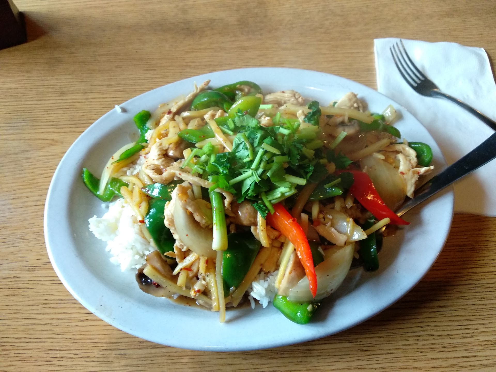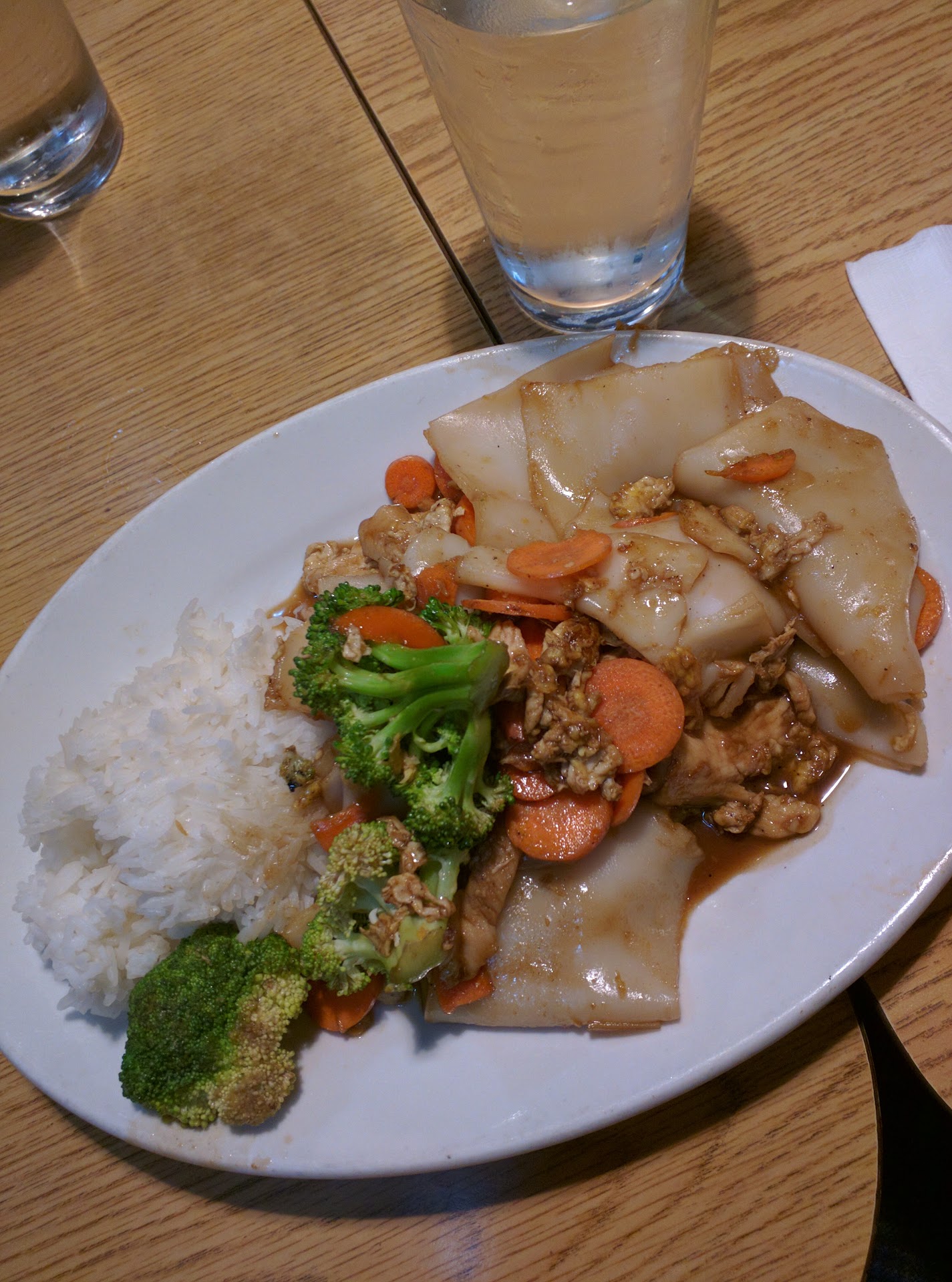 Read moreI don't normally write reviews, especially negative ones, but the service for dinner tonight was just bad. When we arrived, there weren't very many people in the restaurant and we ordered our food and drinks. We had ordered an appetizer to share and three Thai Iced Teas in addition to our entrees. Neither the appetizer nor the drinks came, but eventually after a good long time the entrees did. We asked about both the appetizer and the drinks and a man who I assume must be the owner told us the appetizer was coming in an annoyed tone but ran off without saying anything about the drinks. We got about halfway through our entrees when the appetizer finally arrived. We then asked our server again about the drinks and she apologized. The drinks finally did come but I was little confused that everyone around us had been served pint glasses for their Thai Iced Teas and we had smaller mason jars.