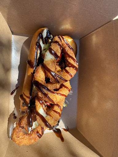 The guy who rung us up was friendly, but the waitress working the restaurant that this shack is attached to was rude and snotty and refused to let us sit at the "nicer" wooden picnic tables he told us to sit at. So we had to sit at the nearby plastic picnic tables by some kids day camp, and paid an 18% service charge for what service exactly? I...