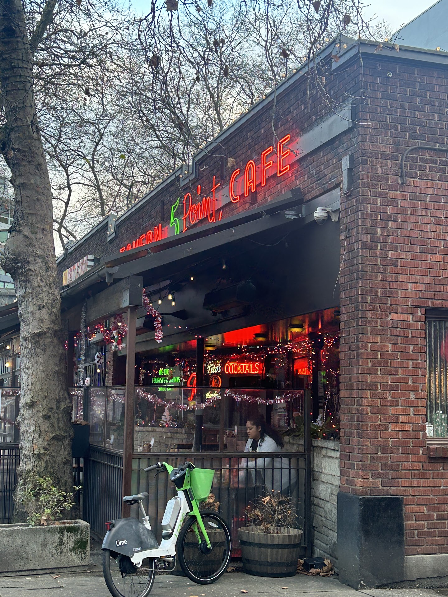 Read moreThe 5 Point Cafe in Seattle offers a unique blend of rock'n'roll ambiance and a dive-bar vibe, complete with a jukebox where patrons can play their music selections by inserting coins. This establishment stood out to me not only for its atmosphere but also for its specialized Bloody Mary menu, which offered the best Bloody Mary I've ever had. The walls of the bathroom are open for guests to leave their mark with messages, adding to the cafe's quirky charm, so bring your pen from home.