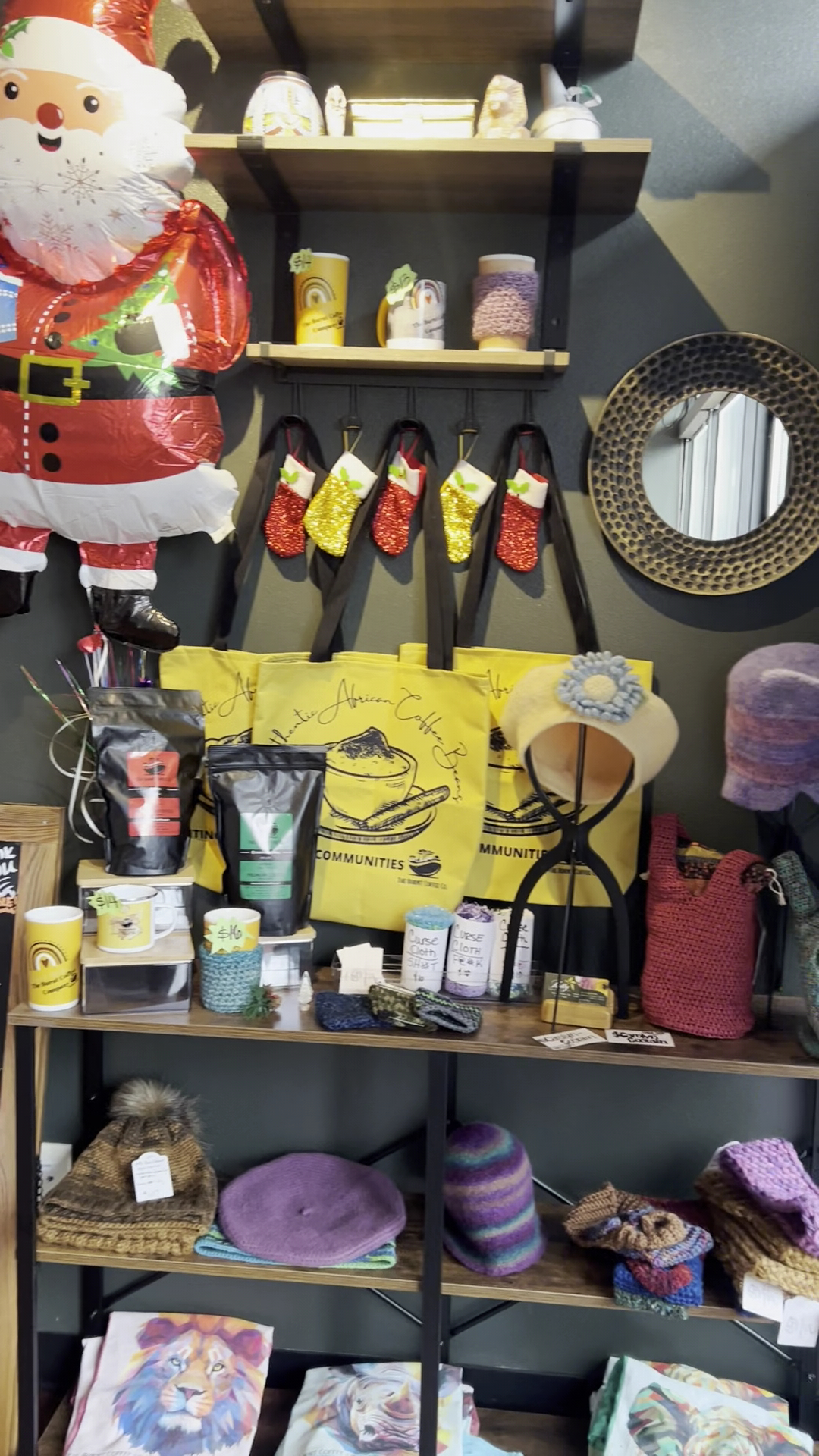 Retail Treasures: Beyond coffee, the shop has bakery treats, some breakfast food and a retail section showing artifacts and clothing.