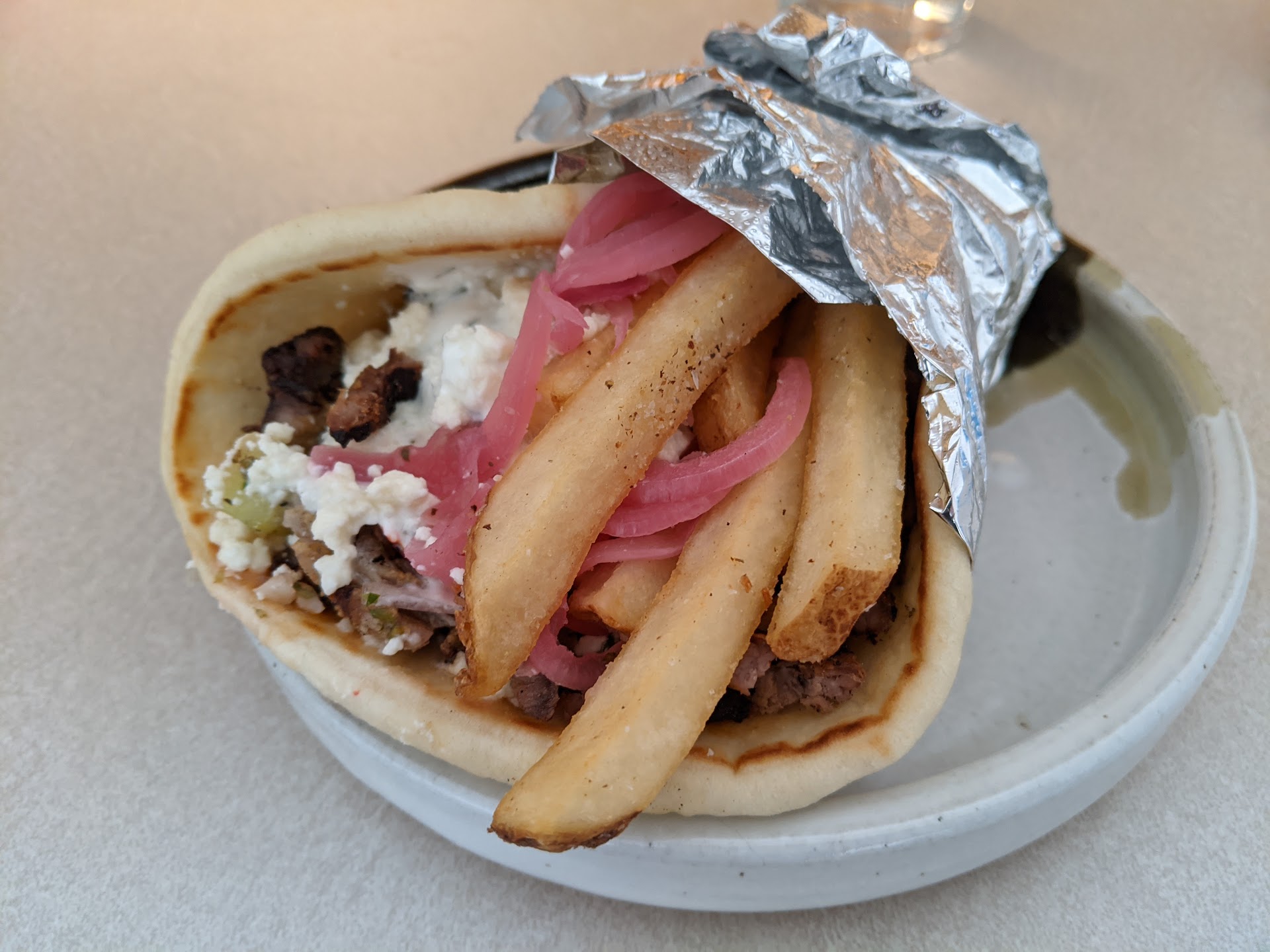 what drags this down slightly, though, is the greek fries. I didn’t think these were good at all - while they were seasoned well with pepper throughout - the cheese was a) not well distributed and b) pretty infrequent. Also, the fries themselves were pretty hard to the touch but not crispy and didn’t have any softness inside. The white sauce didn’t taste very good either
