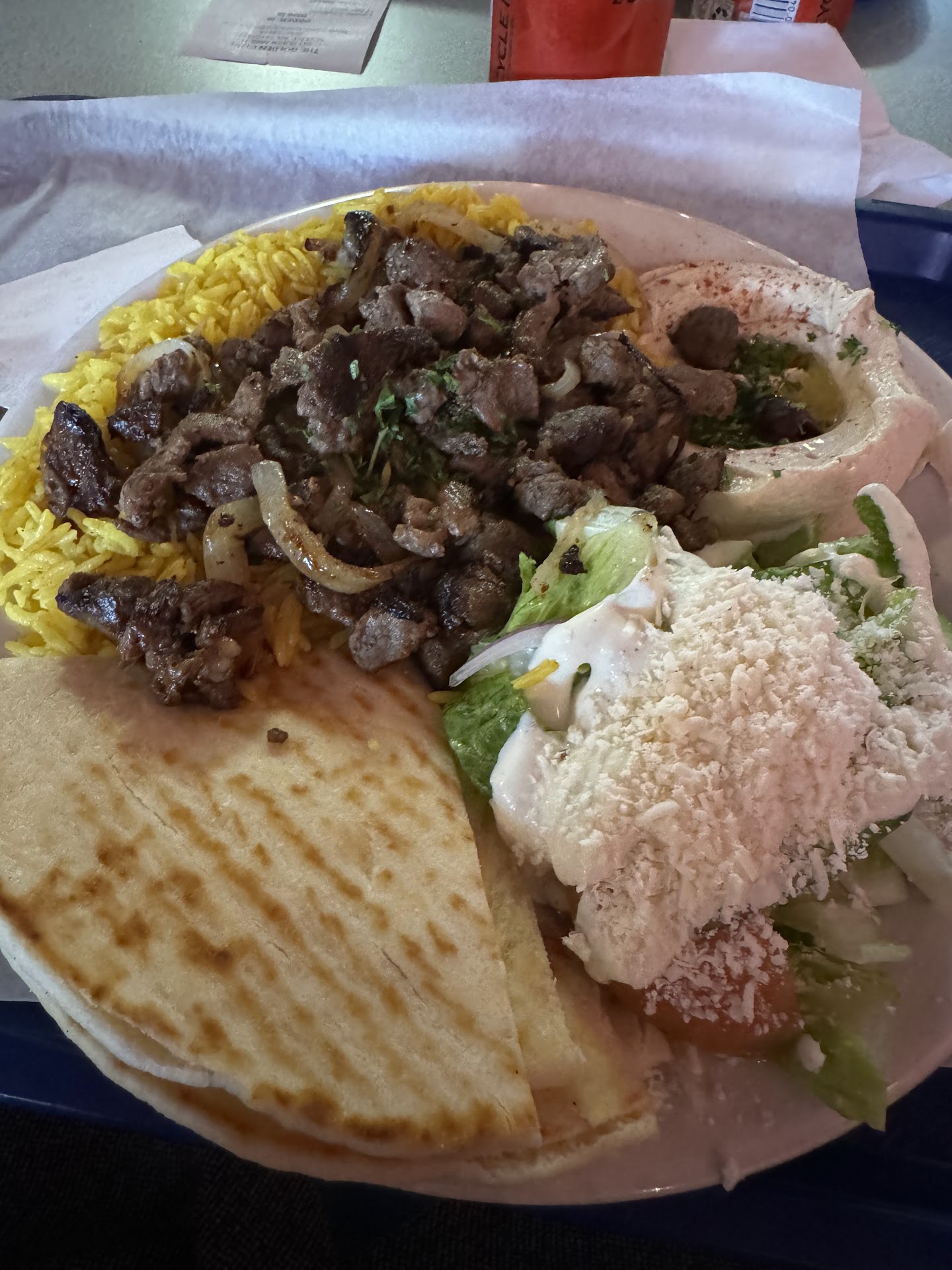 Read moreI went here because the wait at the Thai place a few doors down looked to long and we had to go to a show. What a fantastic choice I made. I had a falafel salad, but I wanted to try the gyro meat, so I asked if they could do 1/2 & 1/2. He said it was no problem, and that was the first win. The food was absolutely incredible. Very classic Mediterranean, no pretention, but carefully prepared, and delightfully seasoned. The tzatziki was incredible. I can't figure out how they got it so smooth. The falafel had a super thick and crispy exterior, and a soft fluffy interior. My husband got the beef shawarma, which was amazing. Just the rice that it came on had a delightfully unique flavor, which I think was cardamom. I told them that they should open another location im Bellingham so I can enjoy it more often! I mentioned that it was our anniversary, and the gentleman at the counter gave us extra baklava, also incredible, which made me happier than I thought I could be. Fluffy, not too sweet and not swimming in honey/syrup. I ate it easily with my fingers. The food was also incredibly well-priced. I left so happy and satisfied, but sad because I live so far away and can't come here regularly. I cannot wait to find an excuse to come to Queen Anne and...