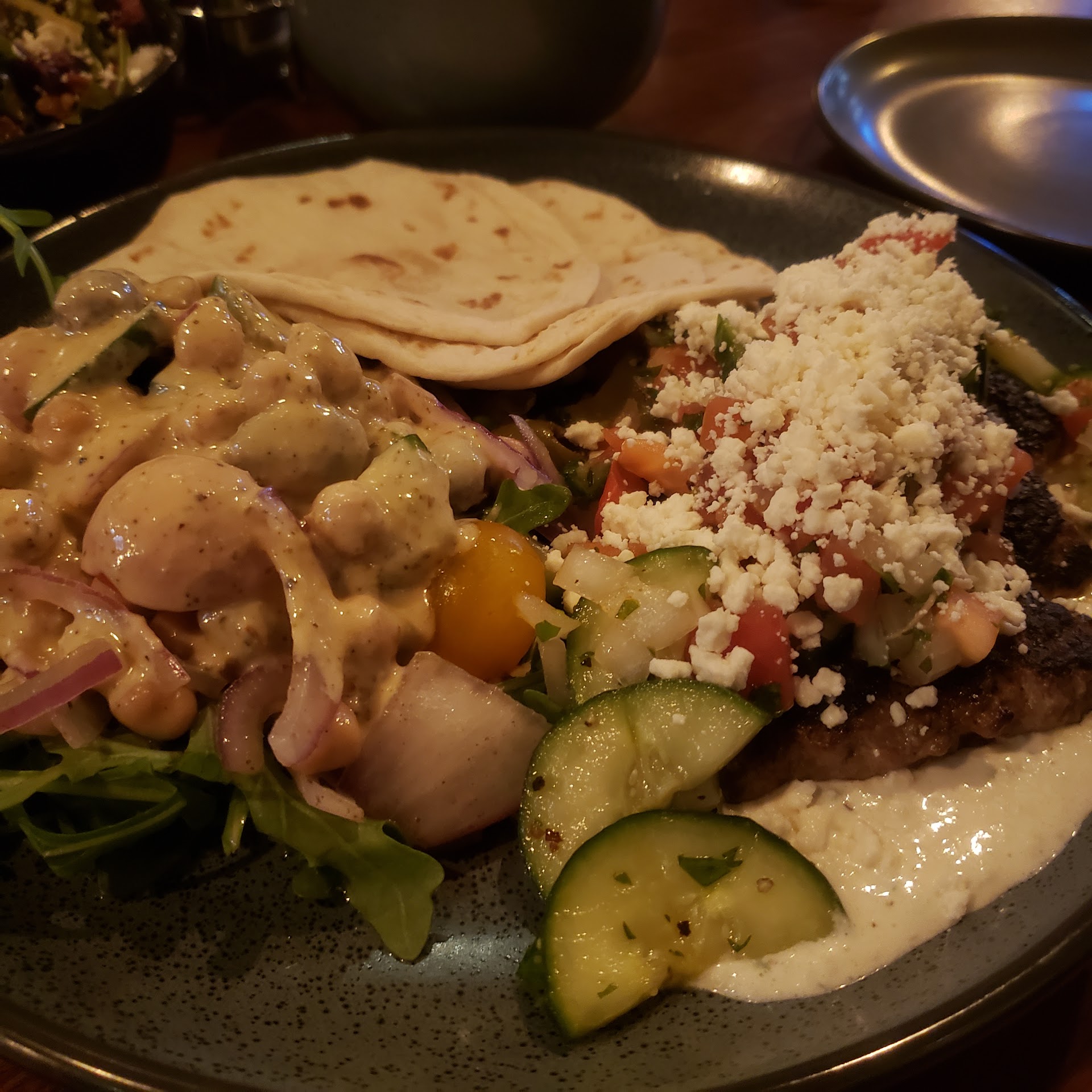 Read moreWe really enjoyed our meal here. Parking wasn’t too bad on a Saturday night, you park along the street and we parked like 2 blocks away. The staff was very friendly but didn’t come by as often as we’d like. The atmosphere was nice, it’s like a small house and the music choice was great and at a reasonable volume. The food was mostly great; the kebab was outstanding, the twice baked potato was fluffy and crispy, the bread and oil was surprisingly good for something so simple, but we did not care for the soup- way too much lime and it was tomatillo based. We didn’t eat much of the soup and the waitresses asked if it was okay, so we told her we weren’t a fan and she was kind enough to comp it. The drinks were really good, lots of cool options. We don’t usually come back to a place a second time but we would...