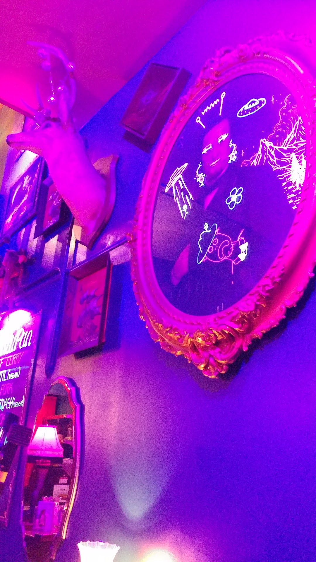 Read moreFriends and I went for a Halloween Event. First, Venue--super eclectic décor which ranged from space paintings, retro wallpaper, velvet cushy pillows & chairs with colored lights. The atmosphere is worth going for. Menu-busy Halloween party, corn dogs slapped + pringles were nostalgic. There is a pizza place next door & you can bring food in (recommend if you have food limitations or want big food meal with your beverages, I think normally they do have a small bites menu). Drinks were curated special for that night, but that was one of the strong points—seeing crafted cocktails & the drinkware glasses were excellent choice to highlight each cocktail. Looking forward as each season changes & how the cocktails change. They sell house bitters—I ended up getting their Velvet Elk blend & Vanilla—fun little thing to pick up for the home kitchen bartender. My friends enjoyed their experience, everyone there was friendly staff & it seemed it drew in other individuals who were friendly/respectful. Would recommend & love...