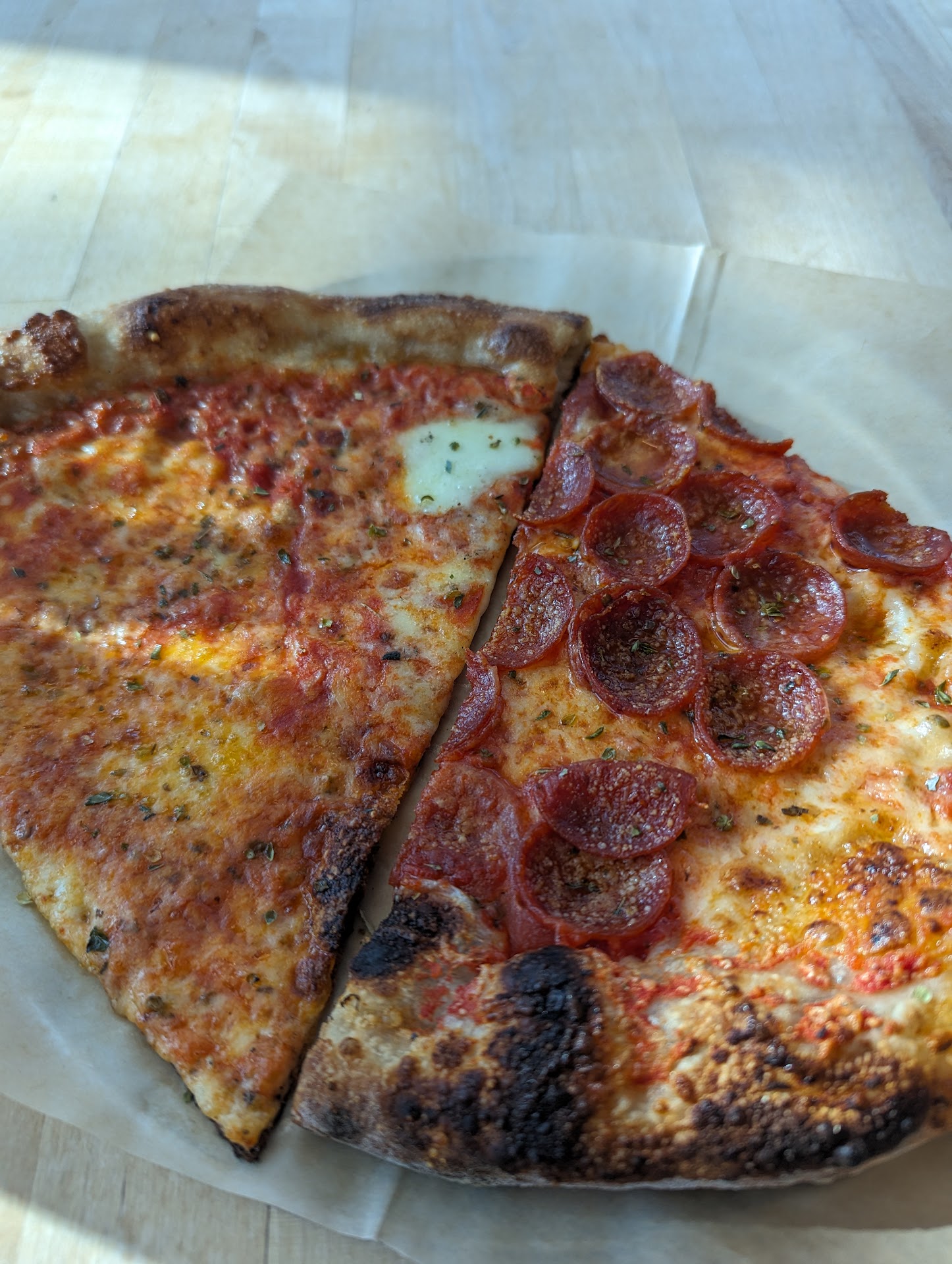 Edit: I've been here a couple times for lunch by now. Overall I'd say they are pretty consistently good, and the slices come out fast, but I've definitely had way better slices on some days than others. Their veggie one with ricotta is super good (I do believe this rotates, though), and their pep has a pretty high ceiling.