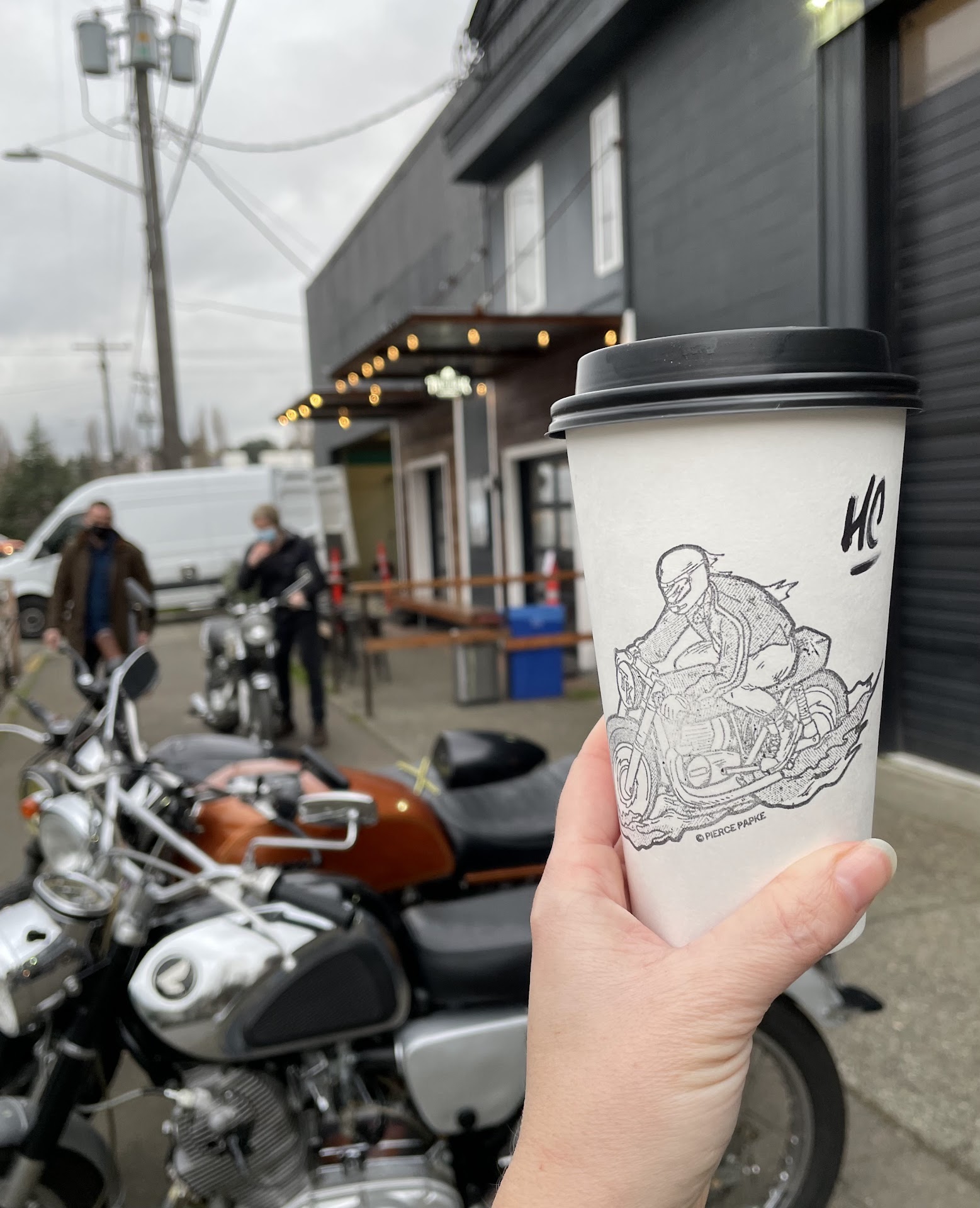 The atmosphere at Two Kick is always good though, relaxed and intimate. When the weather is nice, the little patio outside is often packed with people casually meeting up. It's the only coffee shop down the Queen Anne Hill in the North so I do see why it can draw some crowd. Moreover, Two Kick is a motorcycle theme coffee shop, located next to a motorcycle repair shop and decorated with interesting bike...