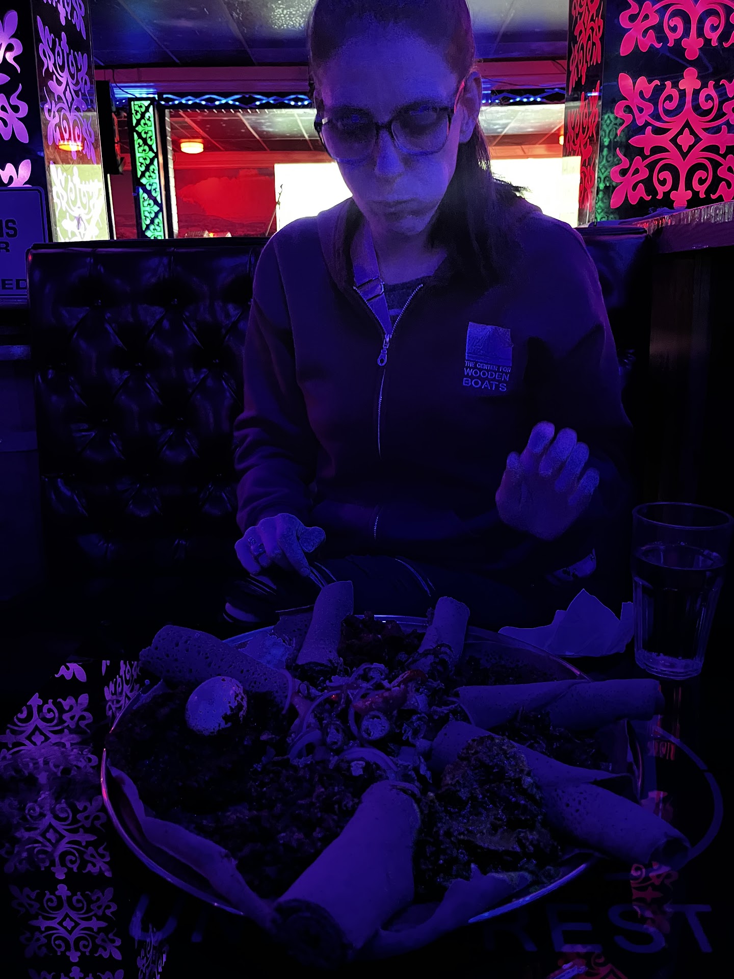 Went there with someone at around 6pm or so. The place seem to have a nightclub vibes. Loud music and darker settings. We ordered two tibsis and habesha beers. The server greeted us and sounded friendly at the beginning. Our food came relatively faster since the restaurant didn't have that many people. Our food wasn't cooked well and was fatty. The injera was good and plenty to make both of us full. The server then left for the day before we had to pay and leave. The second server came with a credit card reader that has no payment or order details but large tip percentages. I was confused since I didn't get a chance to review the payment details you usually see in all restaurants. I selected a percentage anyway and I was expecting her to give me a receipt. That never happened. Then I asked her for a receipt and she proceeded to tell me that she has no idea what we had. I was not expecting that but I politely told her what we had before she contacted the owner. She came back and apologized for the fact that the server had left already and she doesn't know bla bla... It was my first time to go there and I am sure I will never be back. Very low customer service. I am not sure how they are rated at more than 4 stars. Terrible place run by...