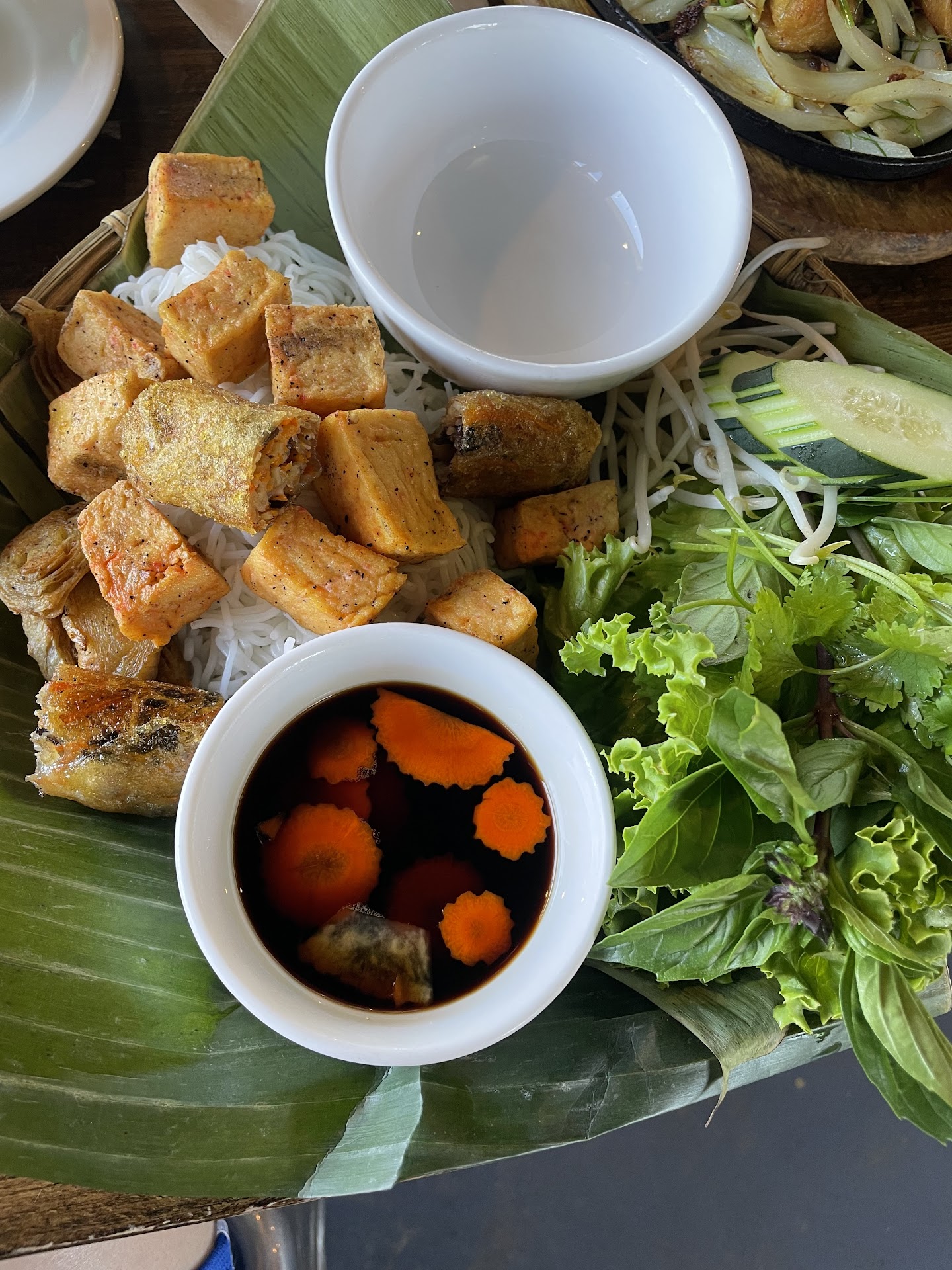Sizzling fish was seasoned so perfectly. It’s marinated with some sauce I can’t put my finger on but absolutely delicious. It’s paired with vermicelli noodles and fresh lettuce, Thai basil and cucumbers with some fish sauce. 5/5