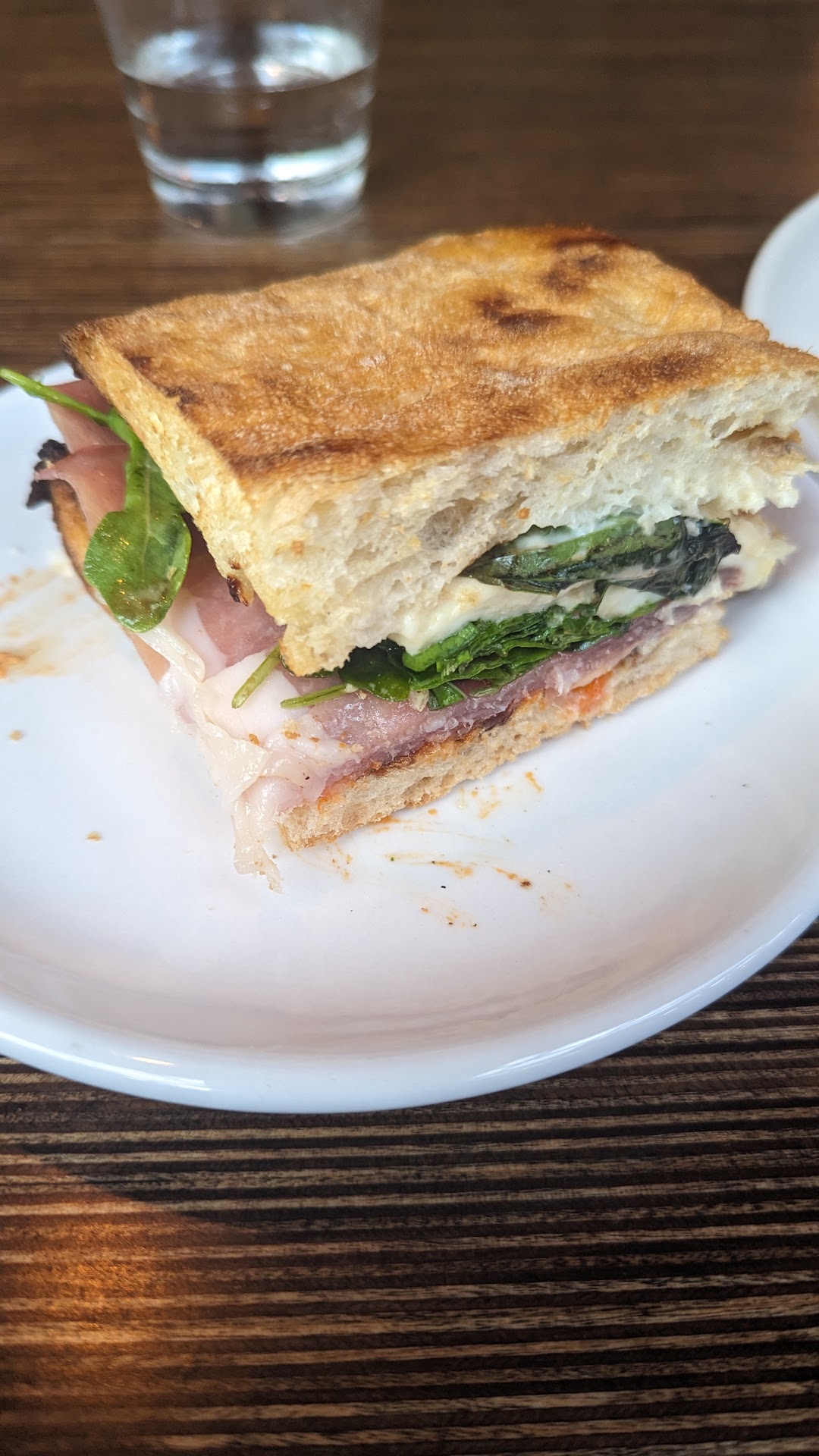 A lot of people around were ordering sandwiches but unfortunately they didn't arrive until after I ordered (so it could inform my ordering.) The sandwich is heavy on the bread and I saw many ditching the top and eating it open faced. That being said the Prosciutto Panino was very tasty. Half of the sandwich (pictured) had manageable breading. I opted to upgrade to a side caesar for $4 which was also good (but man, don't you hate the upcharge for salad?!?!)