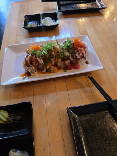 We ordered karaage, the YOPPARAI! roll, and the Genki roll. The karaage came first, which was appreciated, but every piece was smaller than my thumb 👎🏽. The YOPPARAI! roll was incredibly disappointing... I expected a big, gorgeous roll at $30, but it was a very small roll (not centered on the plate) covered with a pile of mediocre fish cubes. It was completely sauced out and a little spicy (not as advertised). It was smaller than the Genki roll, which was $17. The Genki roll was the most attractive entree by far, but still just not very refined and too much sauce.