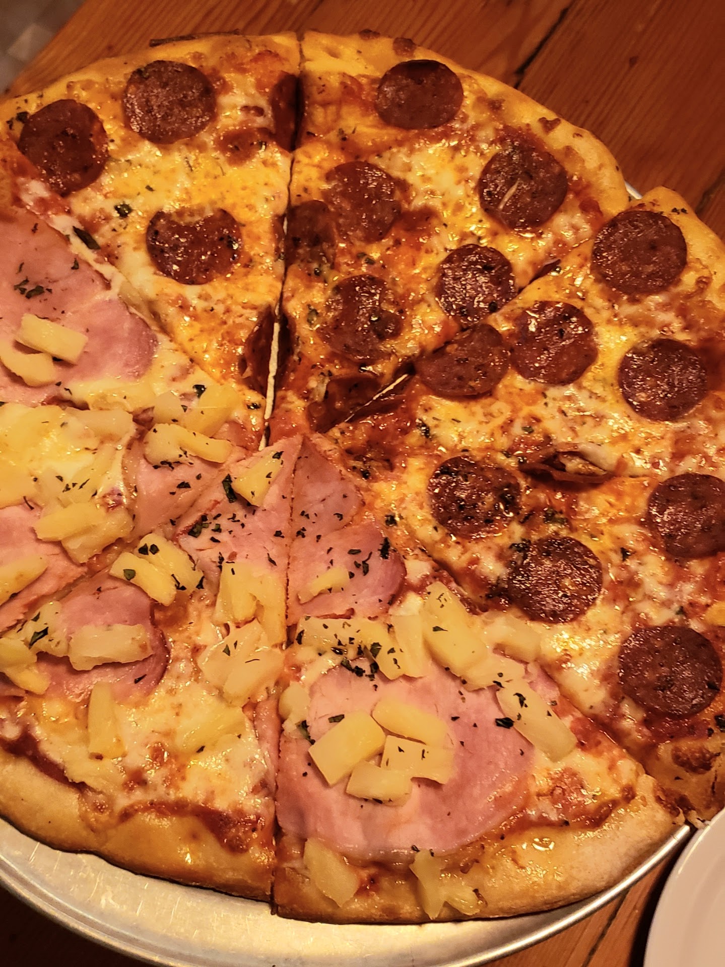 Read moreI read many of the reviews before visiting, and they were hit or miss but seemed mostly positive. It just illustrates that a lot of people don't know what good pizza is. First, the service: 'Wait to be seated' means that someone will tell you to find your own table, scan the QR code, and place your own order. They use Toast, which is a good ordering platform and easy to use. I ordered a medium half/half with a Jones soda, and heard their system beep when I placed it. When no beverage arrived my table, I figured it would come with the pizza which was no big deal. 20 minutes later my pizza was dropped off, and after she walked away I had to get someone's attention to ask for my drink. At least he offered a glass of ice with it. The pizza review: Crust: 3/5 - Nice thickness, crispy edge, and good color. It was tough and chewy, comparable perhaps to Little Caesars crust. Sauce: 2/5 - Where there was some it had OK flavor, but much of the pizza was dry from lack of sauce. Toppings: 4/5 - Pepperoni had a nice bold taste, as did the ham. The cheese had good flavor too, and the pineapple was just the standard canned type. Preparation: 3/5 - Good amount of toppings, cheese, and crust thickness was mostly uniform. Size of pizza for a medium was about right. Overall there was nothing special about the pizza, and the service was bare minimum. I can cross Zeek's off the list as having tried it, but there are much better pizza places just a...
