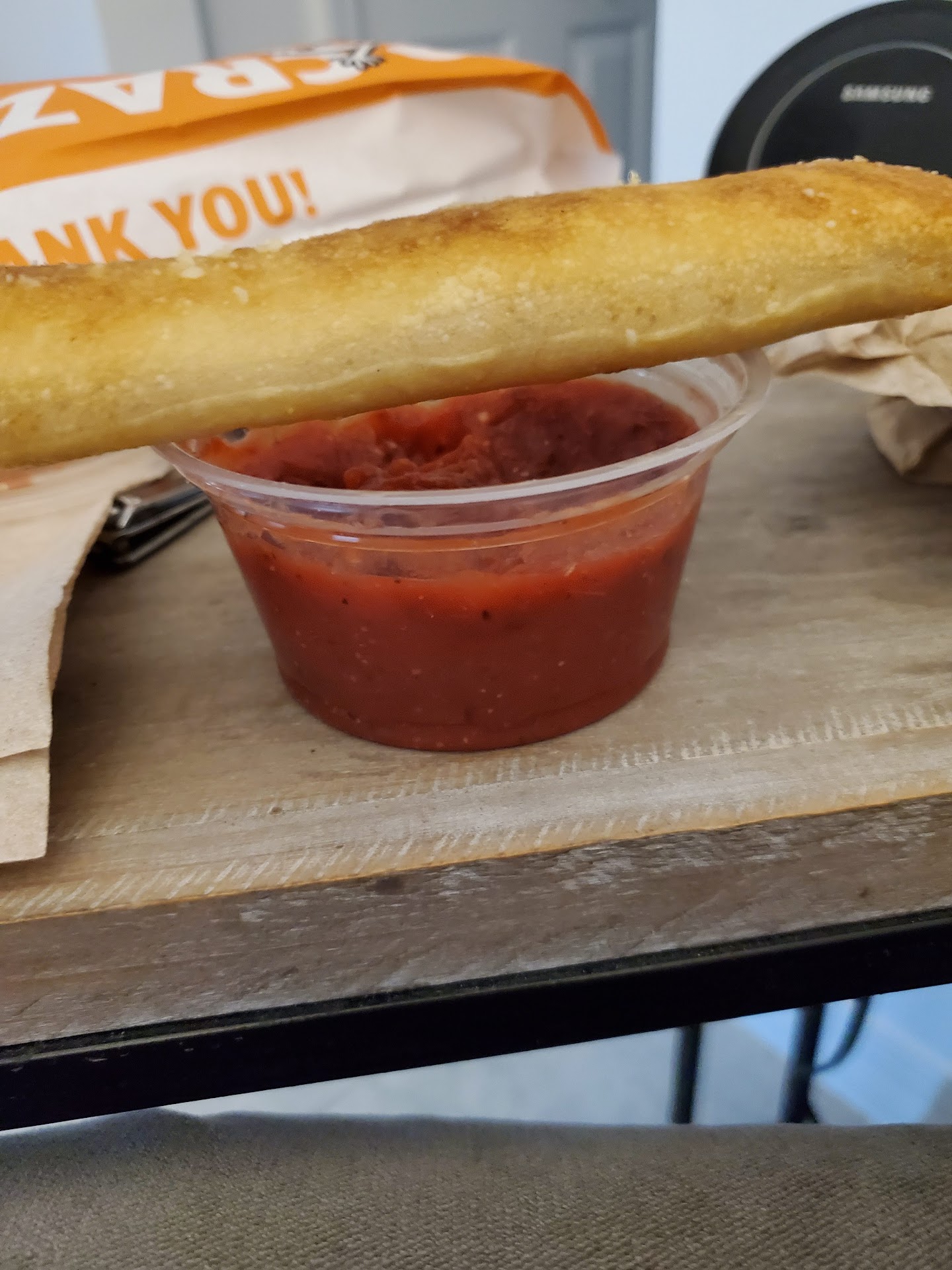 Read moreWhat happened to hot and ready? All I wanted was crazy bread. I placed my order and waited and I waited. I saw crazy bread come out of the oven and then bagged and put aside. I was observing the worker and noticed he was boxing pizzas. So I asked how much longer and he said not too much longer, at this point I had been waiting 15 minutes. Apparently I had to wait until all the pizza orders were fulfilled before I could get my crazy bread. By then I had to remind the worker that sauce came with the crazy bread. As you would expect the crazy bread was cold and dry. It was a $4.00 purchase and may be insignificant to those reading this but little things not done correctly can...