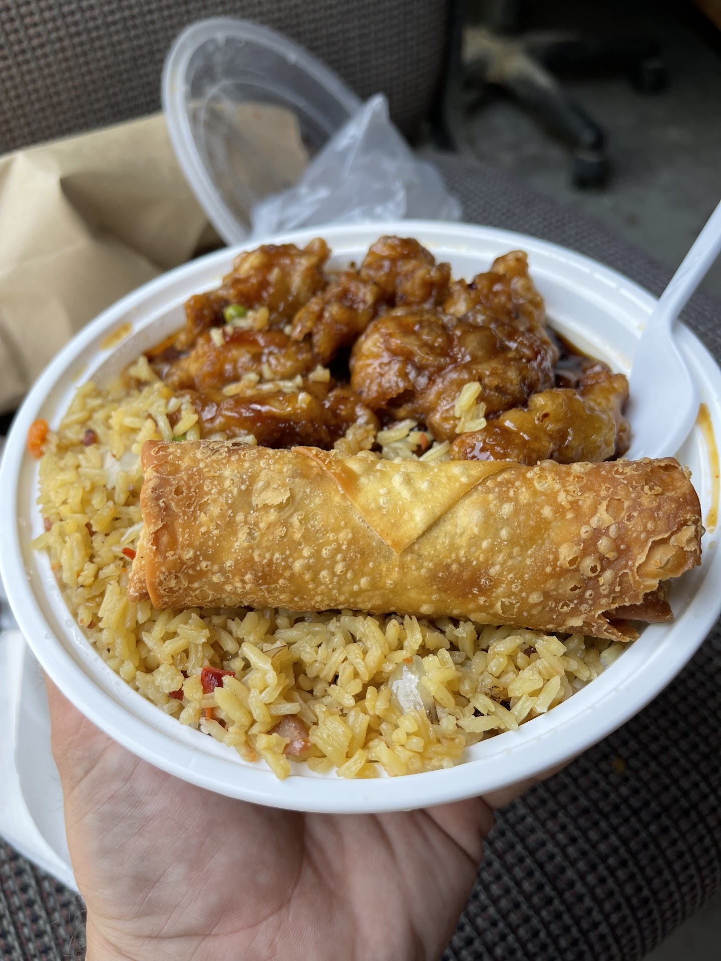 I ordered spicey hot shrimp and got a huge box of rice, I ordered this because previously I ordered kung po shrimp , which had a normal portion but was like what is this? It was weird jumbo cut veggies with mostly celery! I’ve never had kung po with celery, it tasted really weird, yea I tossed it out. Then thought I would try a different meal, they charged me an extra 1$ for three pieces of babey corn I ordered the hot spicey shrimp and got a huge meal of rice and maybe a cup of onions for 15$ including a really small egg roll, if you want to buy 15$ rice and weird not chineese , Chinese food then go for it. Also the phone number on the receipt is disconnected…….weird. Normally you get a meal with the rice in a little white and red box they literally gave me a...