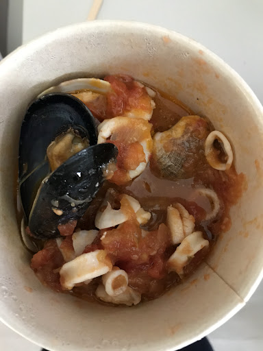 Then you find yourself a table and sit down on a bench with your number. You food does not come together as is the practice of decent restaurants everywhere. But they make sure to prime you of this on the menu. Here's a hint, this is a kitchen that does not know how to que tickets.