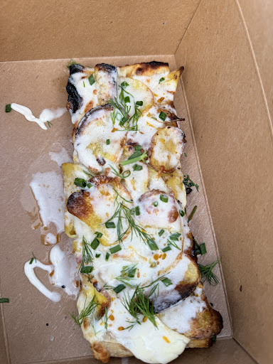 It seems they put up varying different pizzas to choose slices from. When I was there, two were vegetarian and one was meat. (I'm a vegetarian). The flavors and textures are so robust, that even the biggest carnivore would not miss the meat on one of the vegetarian pizzas. The pizzas feel very satiating. Overall, it is a fantastic gourmet pizza experience that...
