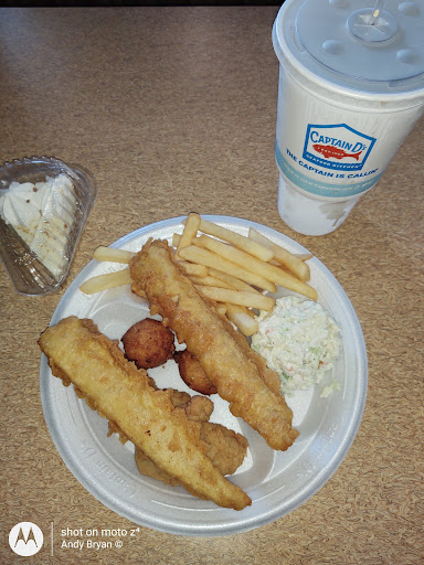 Ā Ā Ā Read moreArrived at about 4:10 PM. Placed our order. Drove up and paid. Had to wait with three other cars for our orders. Took about 12 minutes. We then left the parking lot and drove over to another parking lot and started to eat our meals. The french fries were lukewarm in both meals. My wifeās chicken meal, see the attached picture, looked like the chicken strips had been reheated. They were dried out and tough. Went back to Captain Dās parking lot and took the order inside to get it changed out. Meanwhile my order of fish and shrimp was in the car getting cold. Took 12 minutes for them to replace my wifeās chicken strip meal. I returned to the car and ate part of my meal and it was not good at all, the shrimp were little tiny pieces of shrimp probably correctly called popcorn shrimp. I had started eating my meal when I had to take my wifeās meal back and at that time my french fries were lukewarm. Both my wife and I figured that after having to wait in the drive-through line for 12 minutes after paying that our dinner order would probably be fresh. Big mistake. My wife tried to eat her second chicken strip meal. At least the french fries were hot but the new chicken strips were not much better than the first time around. My wife ate one strip and one hush puppie and said no Iām not eating any more of this and we ended up leaving the parking lot and throwing both meals out. We are sorry we tried this place to eat. We have eaten here in the past and itās always been good.