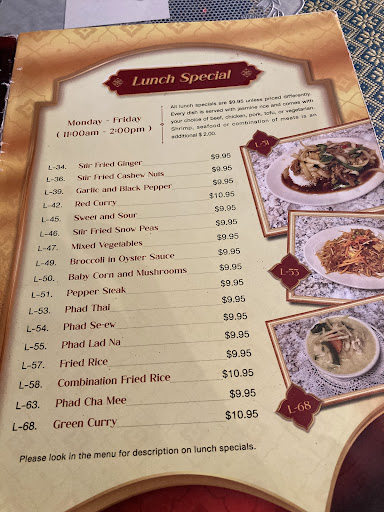 Read moreOrdered pad Thai and the flavor was unedible. Mostly vinegar flavor with underwhelming vegetables added as well. . Im confused about the ratings on google who rated this place so highly?my daughter ordered fried rice and chicken it tasted like refrigerated food. I told the waitress my food was not good at all they took that off my bill but not the other two meals which my wife and my other daughter had ordered which were the same exact thing pad Thai with chicken we had to pay for plates barely touched literally full as they were brought. My daughter and wife wanted to be nice and tried to eat it but had to stop because there stomach started hurting from so much vinegar. We have ordered Pad Thai many other places so we thought we knew what to expect. We ordered spring rolls as an appetizer they were good but like a third of normal size , you get 3 microscopic rolls for $4 . A sign out front should read home of the worlds smallest spring roll. We ordered Thai coffee and tea that was good , and the atmosphere was nice and clean but at the end of the day which happened to be my wifes birthday meal. We paid $54 bucks not counting my one meal that they did remove and left hungry with a loss of appetite. Bad experience never will we be back . We ended up eating taco bell...