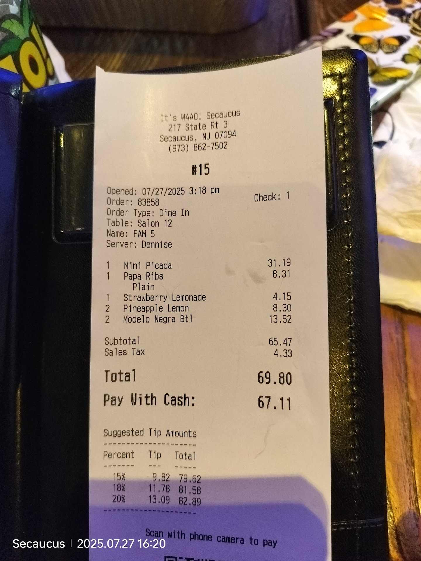 Read moreOk, I seen a couple of reviews that are saying that the food was delicious. Well, here is my review. 3 at the table and we had ordered our food. 1st person gets what they ordered. It was ok. The appetizer came out with the food by the way. Let's start with the menu. The option on the menu is fried or grilled fish with 2 sides. I ordered the grilled, so here where it start. My 2 sides was Pico de gallo with green salad. Lettuce was a but old, so was the pico de gallo. 2 dishes out with the appetizer. The 3rd dish came out 15 minutes after. Third dish was a chorizo sandwich. Spanish sausages as anyone should know you just heat it up. 1 piece of chorizo between 2 sides of bread flatten with 4 end of a tomato. It look like they ran out of tomatoes t put on a sandwich. And that took 15 minutes to make. Another thing was we went to the bar to ask for mojito and the bartender came to us and told us that the mint was bad so he couldn't make our drinks. I would suggest not to go but if you do prepare yourself to sit on the toilet. But I can say that the owner had came 10 minutes before we left and comp us the whole bill. So if you go just complained and your...