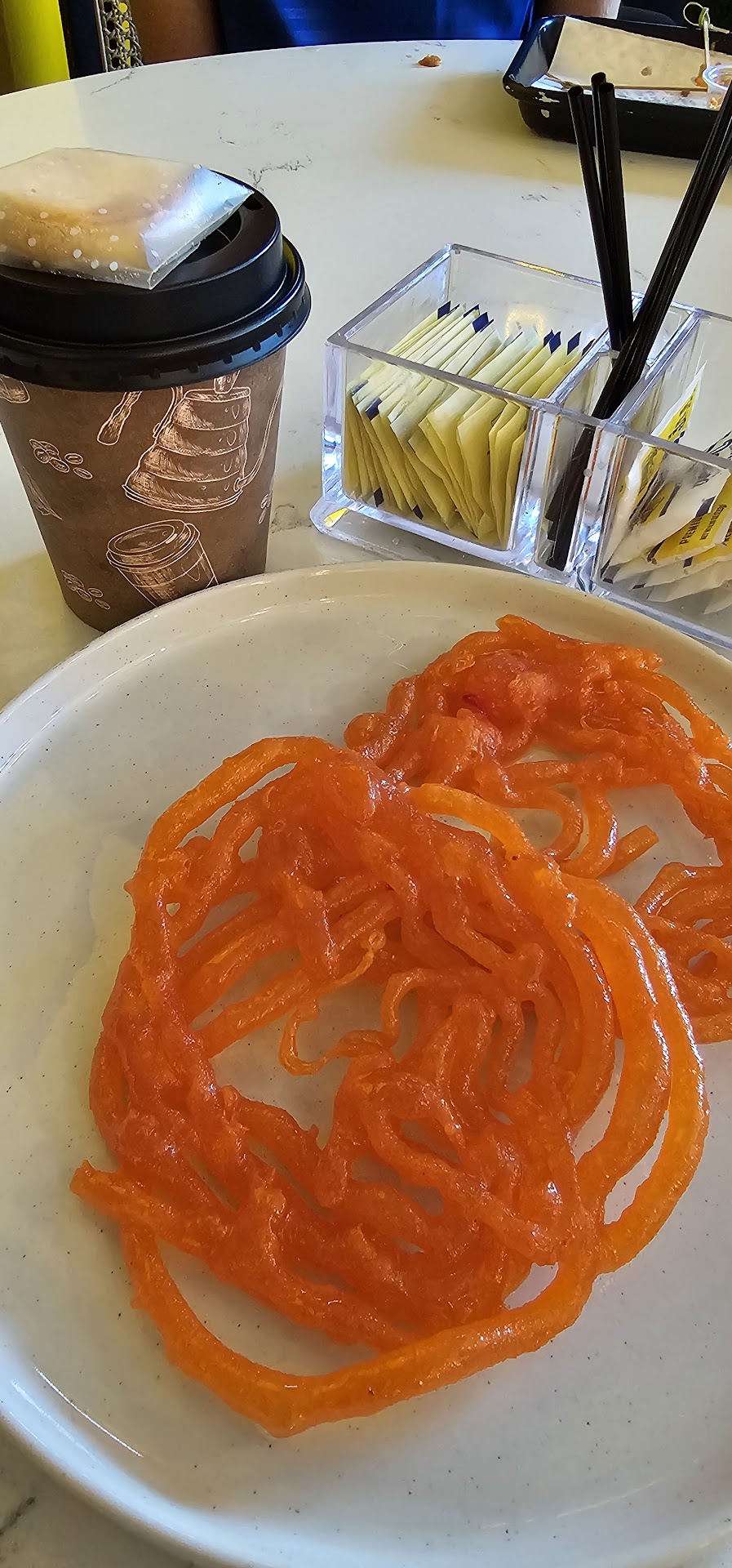 Jalebi was thin and not so sweet.