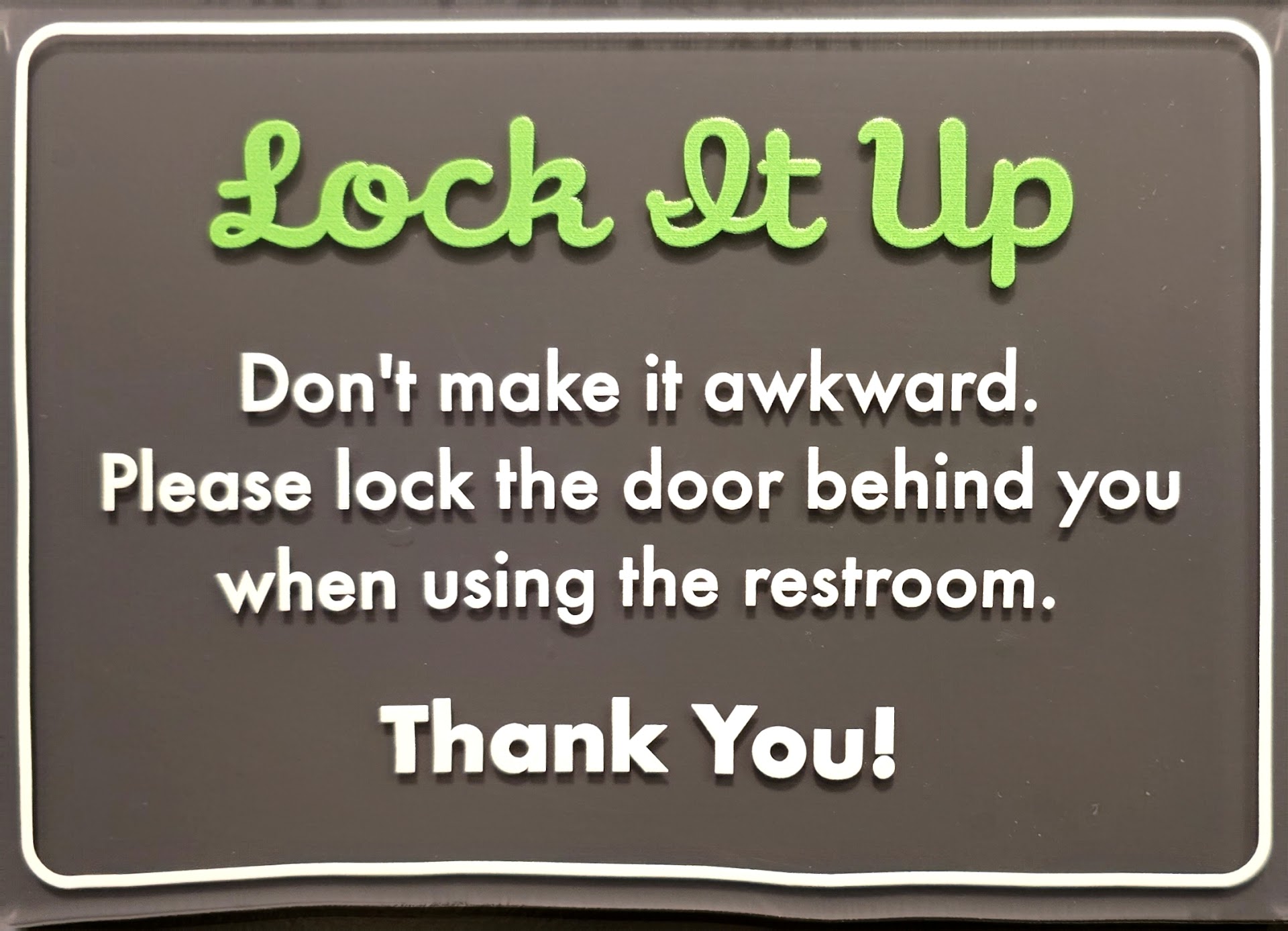 I also have to mention how much I love their gender-neutral restrooms—they always add a creative touch with their clever little signs inside.
