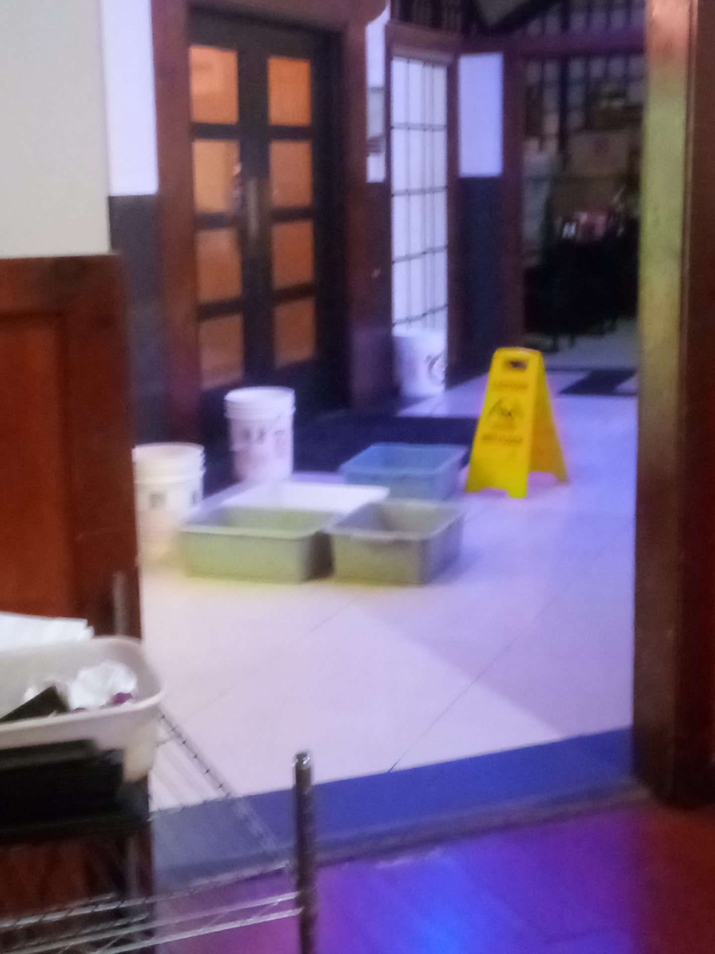 ?: They sat me at a table next to a bucket and a dish basin.(There were additional ones by the door. Yes, it was a heavy rain day) At the beginning of the meal I was disturbed by them, by the end I was eyeing them wondering if I was going to need them. I do wonder what the disco ball is used for(?) I can still remember what the place looked like before it fell into sadness (sorry, I can't think of a better description for tonight) and the architecture is pretty overall. To be fair: the sushi's ginger was very fresh, the wasabi was strong, the broccoli from the chicken broccoli was edible and the chocolate cake dessert was tasty. The Lychees were a nice option. One benefit of all the bad food is I didn't overeat at a buffet for once. I'm currently sitting in my car wondering if I'm going to be sick tonight. (Edit: I wasn't) I do not plan on returning....