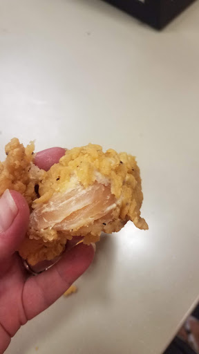 To start the evening, the staff that was in the food prep/cooking area were on their phones and not paying attention to work. This caused a major problem because they served my child completely RAW chicken strips. I'm not talking slightly undercooked, completely raw (see attached pictures). Unfortunately, I didn't think to check her chicken prior to giving it to her and she ate an entire raw chicken strip before she told me it tasted funny. When I brought it to the manager's attention she was completely laid back and while laughing she said "ew I dont know how that happened." She did refund the $5 for the kids meal, and told me to call in the morning and speak to the manager if my child gets sick, which she did, for two days. EDITWhen I called the manager to let them know my daughter was in fact sick, like they asked me to do I was told "you already got refunded for the chicken, what are you expecting us to do?" I said I'm just calling like I was asked to do, and she said um ok thanks. And that was it. I would highly recommend...