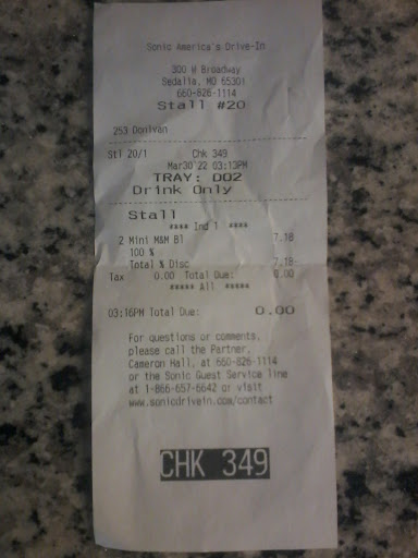 While the people working in this store are nice enough in their service I can honestly say I not only will never order here again but I will warn others I know to go elsewhere, those working in this particular store have absolutely no idea how to cook food, I have worked for Sonic in another town and what I have experienced ordering from this store infuriates me. Every single time I have gotten food here my order is made wrong, burger patties are old and burnt even when I have requested them made fresh, hot dog buns stale and hard, hot dog itself burnt, will not be coming back and if I had the option on my screen I would upload photos of the absolutely inedible embarrassment for a meal these people expected me and my...