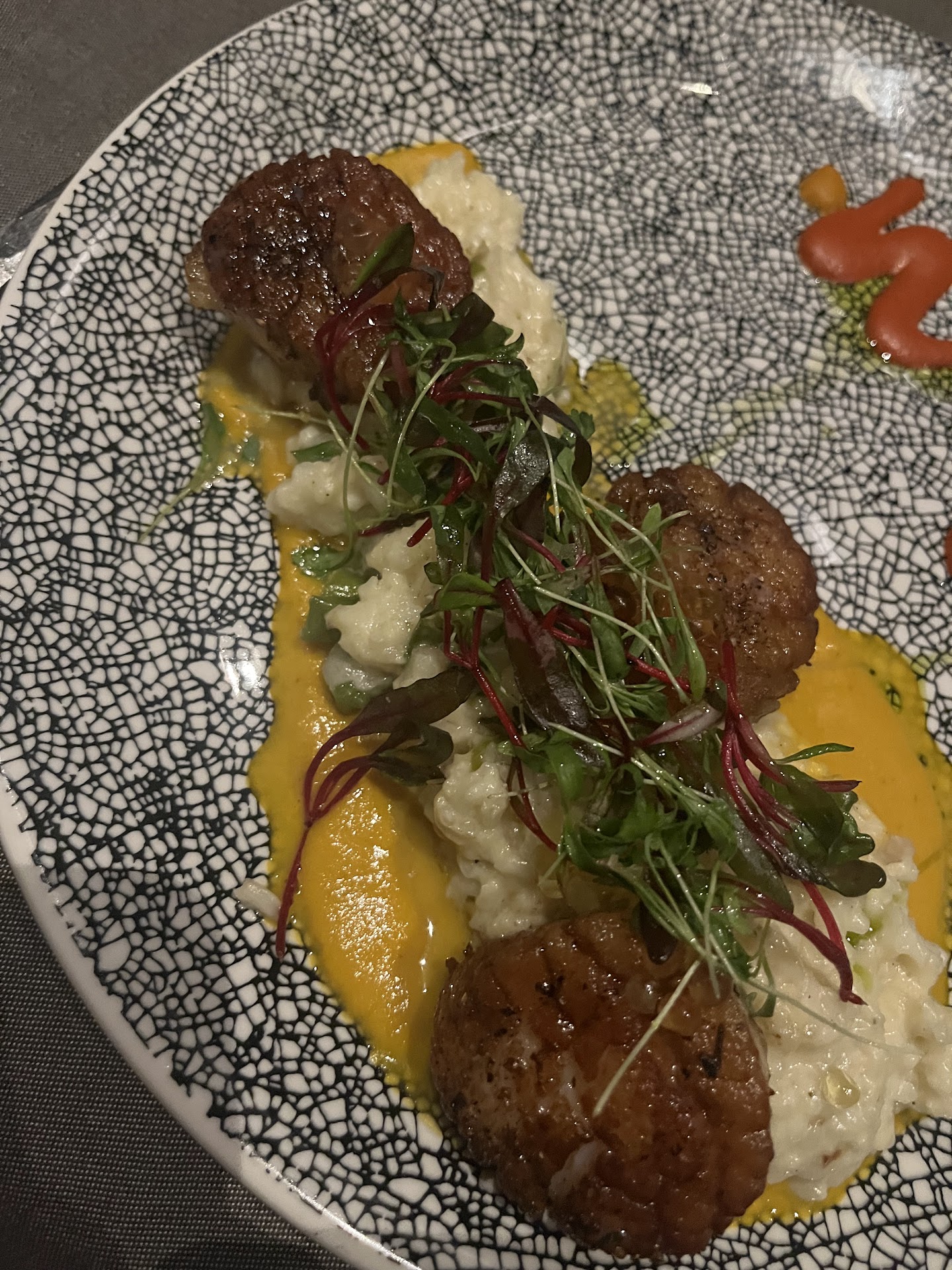 Read morePerhaps the restaurant was having an off night or because we had an 8:45pm reservation and everyone was tired and wanted to go home. The food lacked seasoning and the Latin and Asian flavors seem forced together and didn't really compliment one another in the dishes. Butterfish and halibut are two different types of fish, but both names were mentioned on one of the starters. Needless to say it was overcooked and dry. The roasted artichokes was the only dish that was seasoned and tasted great! We ordered the duck entree medium rare and the outside was well done and the inside was completely rare. The duck "bon bon" was dry and had an overpowering ginger flavor. Our seven hour braised bison short rib was dry and the demi was bland. Our server was attentive and friendly. The musician playing that night has a great voice, but was a little too loud for such a small restaurant. I was expecting better quality food for such high prices and the standards of the hotel. All the other reviews were so positive, so I was...