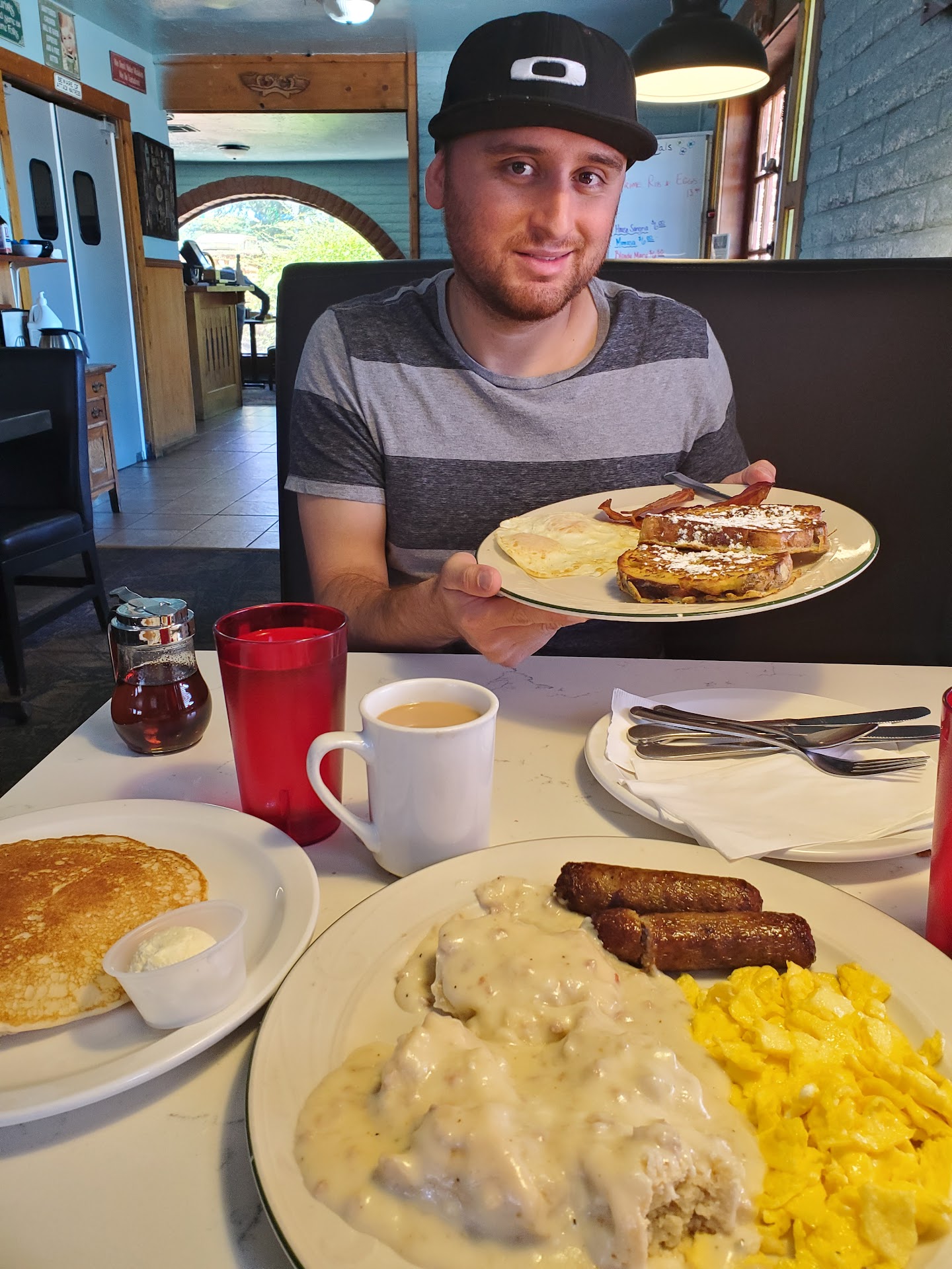 Read moreCame in the day before Easter, and as expected, it was crowded. However, there seemed to only be one man running the whole operation. Felt bad for him running around trying to seat multiple groups, serve multiple tables, whip up special drinks, clean tables, get refills, and cash people out all on his own. I didn't see a single other staff member the 3 hours I was there. I tried not to be too upset with the service, seeing he was a one man band, but we were here longer than we intended. It was a while to be seated with multiple open booths. The food took almost an hour to arrive, and we waited an akward amount of time for our bill. To top it, all of the food was pretty mediocre. The eggs didn't have a speck of pepper or salt on it. The burrito was drowned in sauces but still managed to be flavorless, the meat was dry, the fries needed condiments to be edible and weren't even room temp, and the pancakes don't automatically come with whip cream or butter. I felt bad asking for another refill, but the cups give about three sucks of a beverage, and then you're out. I don't know if they're just highly understaffed or majorly under prepared, but they should regroup before the next rush. I wouldn't eat here again on...
