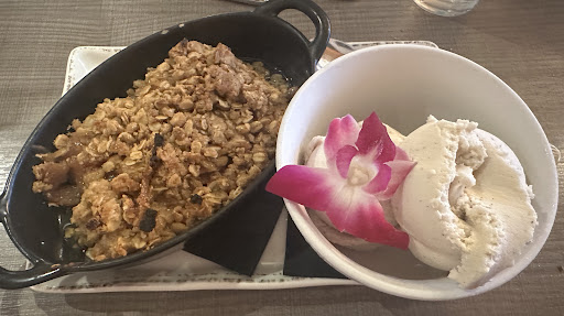 The food itself? Delicious! We ended up eating here four times in six days because we just couldn’t stay away. The pizza was outstanding—flavorful, perfectly cooked, and totally crave-worthy. And don’t even get me started on the apple crisp with coconut ice cream—served hot right out of the oven, it was the perfect dessert. Absolutely amazing!
