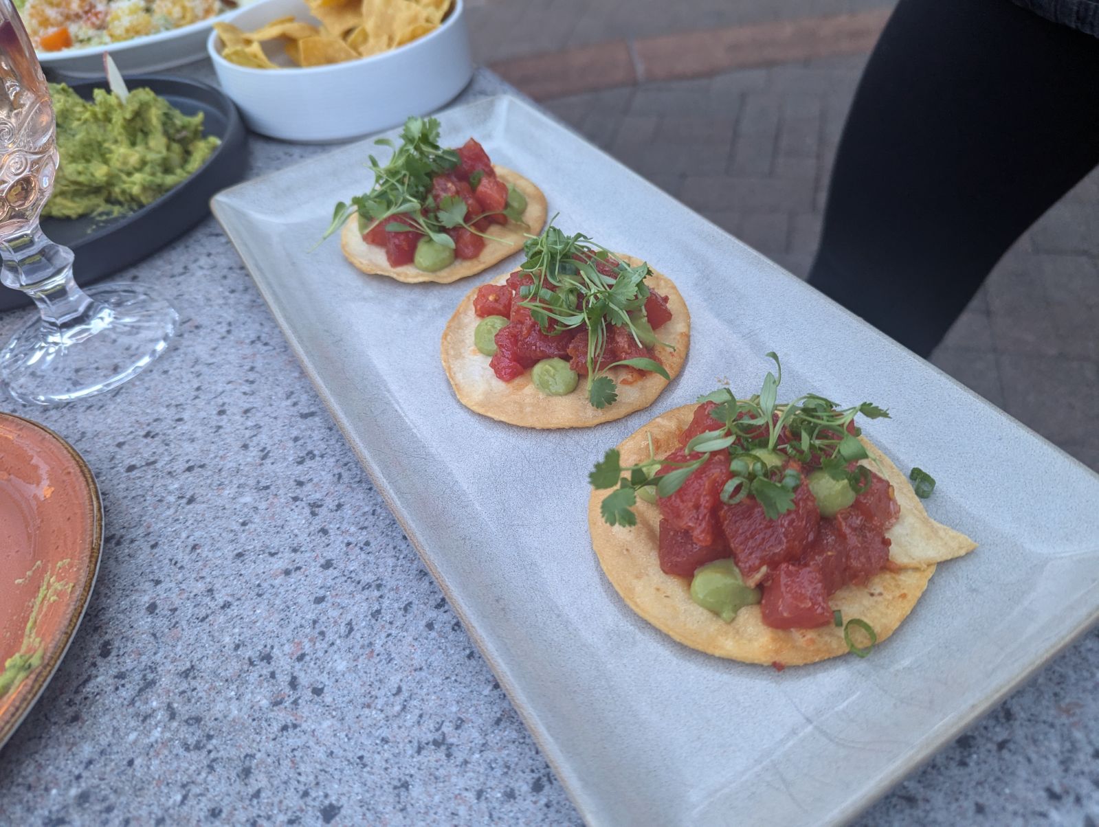 The food was great too. We split two apps - the ahi tuna tostadas and the guac. I was a little nervous about getting seafood in a landbound state, but the tuna was super fresh and tasty. The guac, as you can see in the accompanying picture, is an insanely large serving with three heaping scoops, and that was really good too. I don't like crunchy/chunky guac, and this was right on the line for me but didn't go over. For my entree, I opted for the Roasted Chicken, which hit the spot. The chicken was juicy, tender and flavorful, and the accompanying sides - for me, notably the chipotle sauce - were perfect complements.