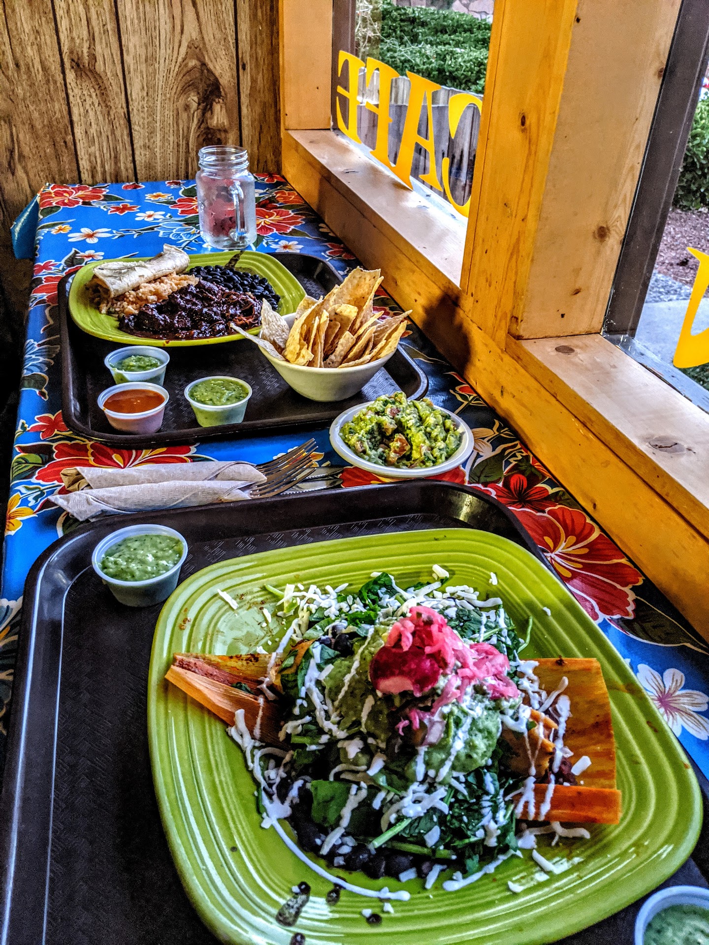 Chips and salsa - salsa was thin, but packed a lot of flavor but the bowl of chips were so small, we had to order another bowl for $3 more dollars. Guacamole - really good, but like the salsa, a tiny bowl of chips just was not adequate. Jarritos - my son is a huge fan of Jarritos, so he was happy. Chicken Burritto - good, not great and served Ala Carte. No Carb Beef - proclaimed best dish of the night by my wife, and she is picky, very picky. Chiliquilies - vegan dish, lacked flavor and was soupy. Tamale - vegan dish, hot as fire - way too hot. When I brought this up the owner said it was sometimes mild and sometimes hot, they could not control it. (No offer to refund even though I only took two bites) Black beans - heavenly good Rice - a tad bit dry, okay desert conditions dry.