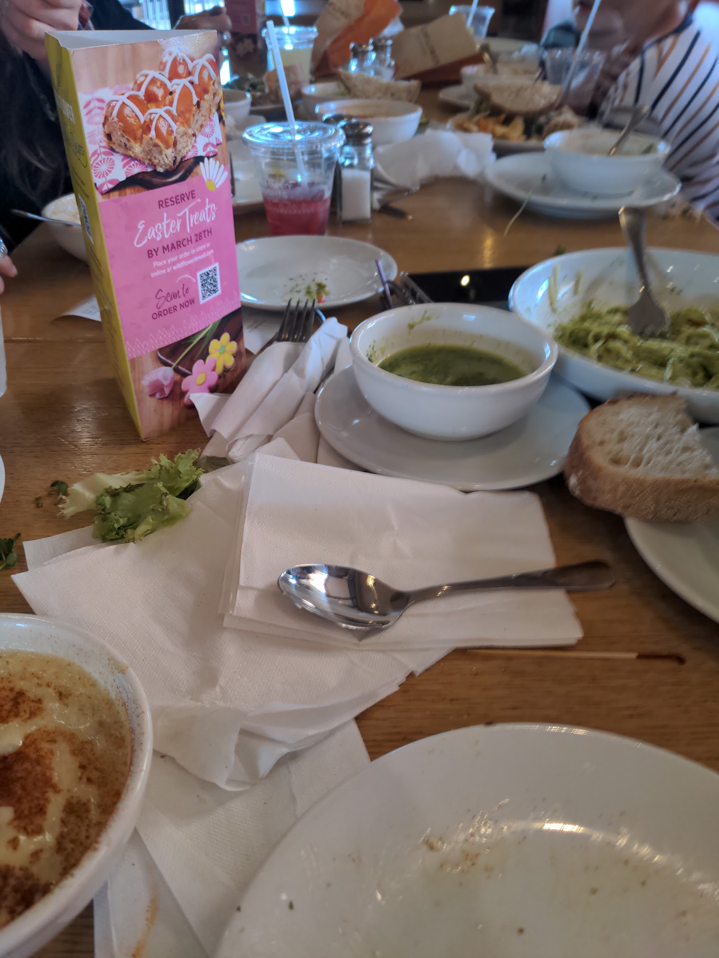 Read moreMy husband and I have eaten many times at the Wildflower Bread Co in Flagstaff. We have been impressed with the great food and quick service even when they are really busy. Therefore we were really disappointed in the service and the food in their Sedona restaurant. We waited 40 minutes for our food when they didn't seem especially busy. About 30 minutes after we ordered, a server came to our table with some else's order. Then a lady sitting at the table behind us noticed that people that had come in after we did were getting served their food. I found the manager and shortly after, our food arrived. Our soup was luke warm, my husband's soup wasn't what he ordered, and we had no spoons. My husband chose to eat the luke warm soup he was given after I fetched 2 spoons. I took my bowl of soup back to the kitchen where the lady there tried to tell me it was hot. At least I was given the choice of either warming it up in their microwave or getting a fresh bowl of soup. I chose the latter. I will say the manager was wearing many hats tonight helping to bring food to the tables and pitching in wherever needed. It looked like I was not the only unhappy customer. The Southwest salad with chopped salmon and the crumb crust apple pie was good when I finally had the chance to sit down to eat. We will not be...