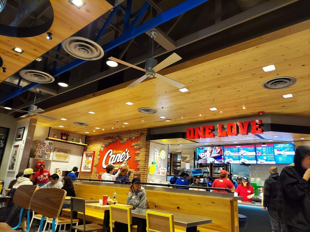My family and I are big fans of this restaurant, my sister was visiting us from out of town, and we wanted her to experience Raising Cainās for the first time. We ordered dine-in, but our food came out in take-out boxes. Believe it or not, this affected the quality of the food. Maybe it sat in the boxes a little too long, but the condensation in the box made the fries and toast soggy. The boxes were also too big to fit in the trash containers so many people were leaving them outside next to the trash cans.